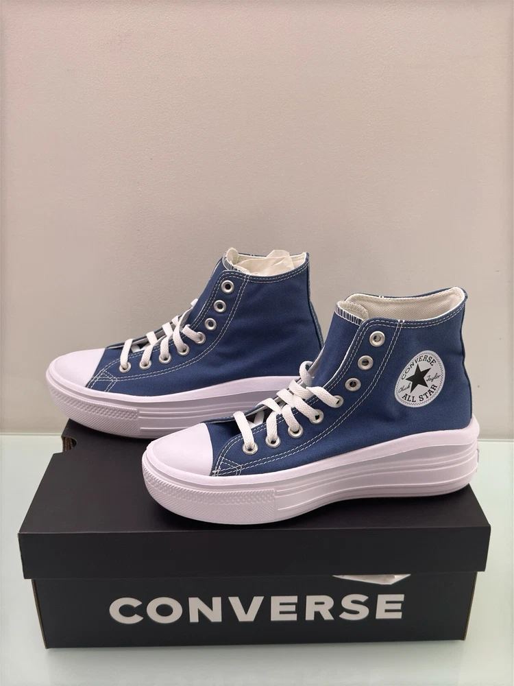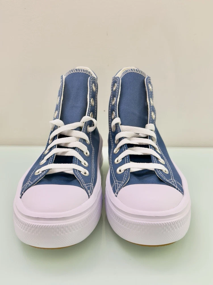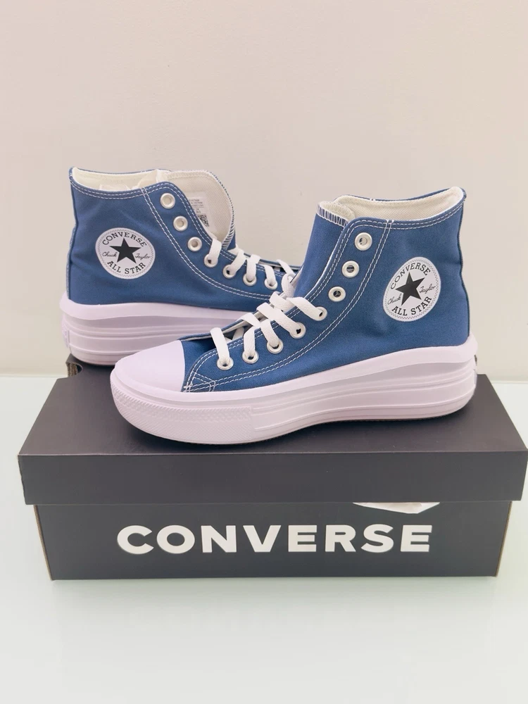 Elevate your sneaker game with these stylish Converse Chuck Taylor All Star Move Platform High Armor Blue Jean W sneakers. The high top shoe shaft style and drawstring closure make them perfect for any occasion, whether it's casual wear, activewear, or workwear. The versatile blue jeans and hip hop-inspired design make them a must-have for any fashion-forward woman's wardrobe. These sneakers are made with breathable canvas upper material and comfortable fabric insole material, ensuring they are lightweight and perfect for all seasons. With a rubber outsole and cushioned features, they are ideal for gym and training, walking, weightlifting, school, beach, dance, driving, skateboarding, yoga, fishing, cheerleading, running, and jogging. Get ready to make a statement with these Converse Chuck Taylor All Star Move Platform High Armor Blue Jean W sneakers! Thank you for looking! We appreciate you taking the time to view our listing. If you decide to make a purchase, we kindly ask that you leave positive feedback. Your satisfaction is our priority, and your feedback helps us continue to provide excellent service. If you have any questions or concerns, please feel free to reach out. We’re here to help! Thank you for your support!