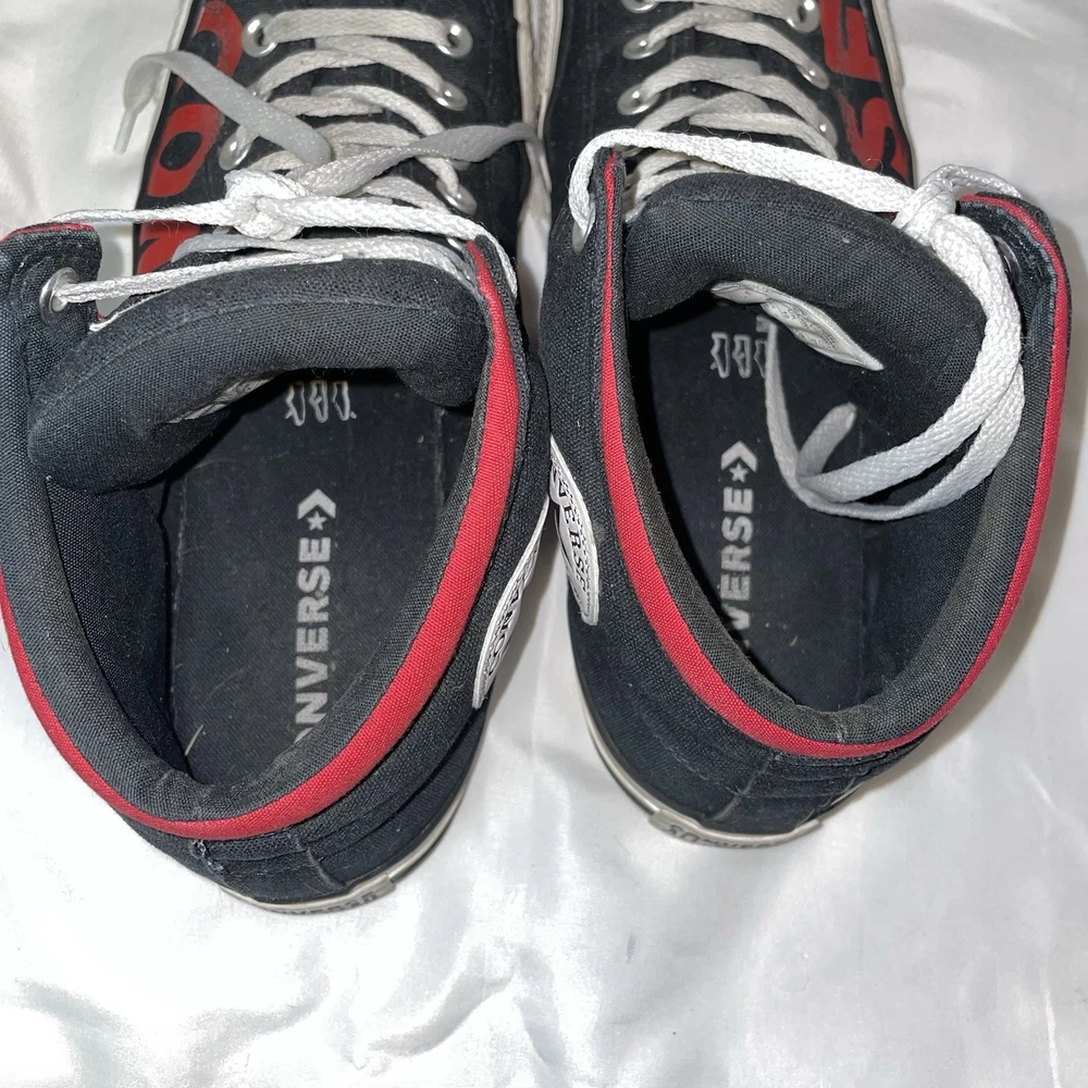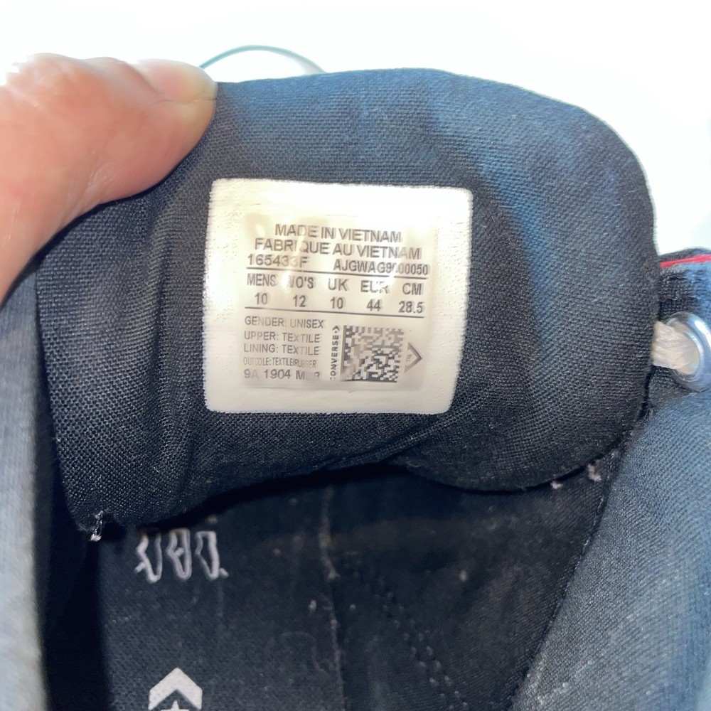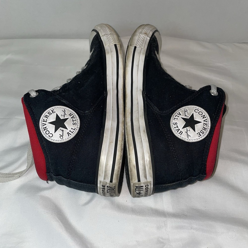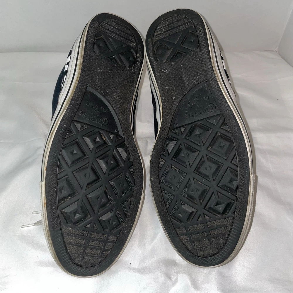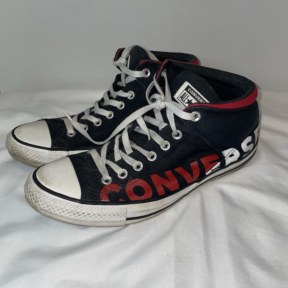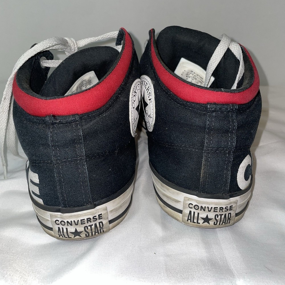 The Converse Chuck Taylor All Star Street High Wordmark sneakers in Men's size 10 or Women's size 12 are a stylish and versatile choice for athletic wear. With a classic high top design and black colorway, these shoes are perfect for casual outings or everyday wear. Made of durable canvas material, they feature an iconic Converse Chuck Taylor All Star model with a star-themed detailing, making them a trendy and comfortable option for any sneaker enthusiast. Shoes do show signs of normal wear and tear.
