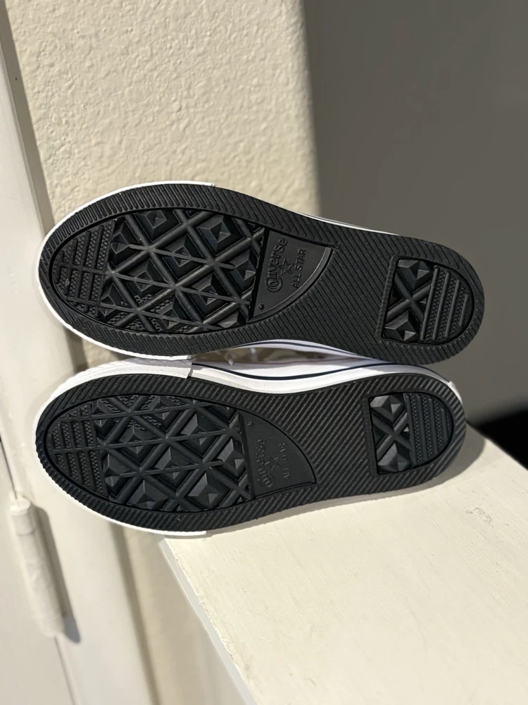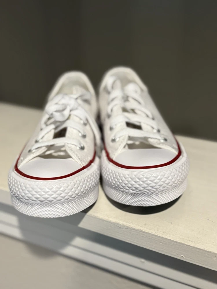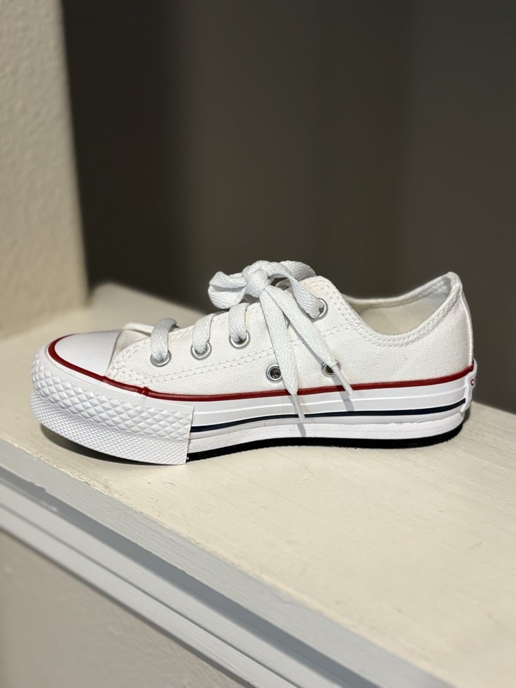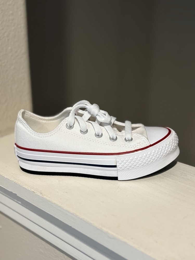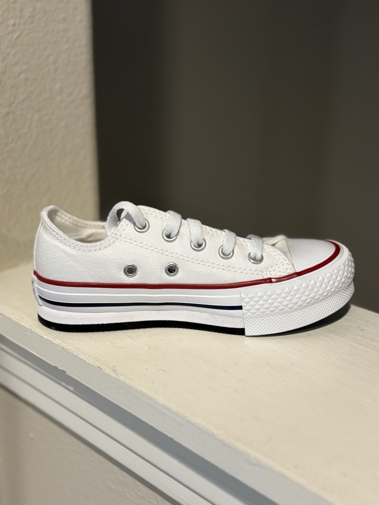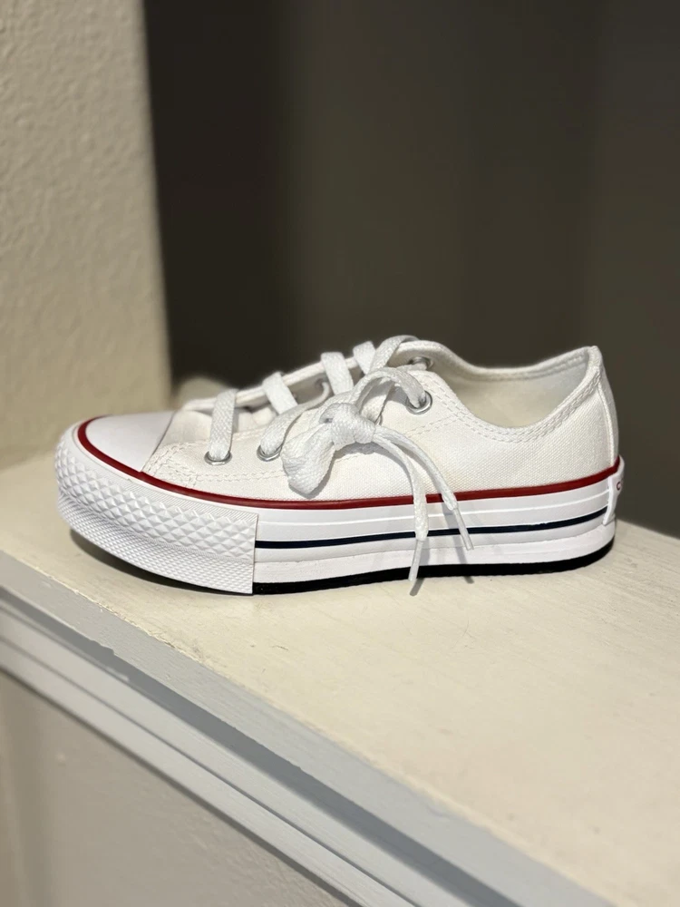 Model:Converse Chuck Taylor All Star LiftHeel Style:FlatClosure:Lace UpHandmade:NoDepartment:Unisex KidsType:Casualgtin13:194433487986UPC:194433487986Style:SneakerBrand:ConverseFabric Type:CanvasPattern:SolidTheme:StarsUS Shoe Size:13Product Line:Converse All StarShoe Width:StandardToe Shape:Round ToeColor:White