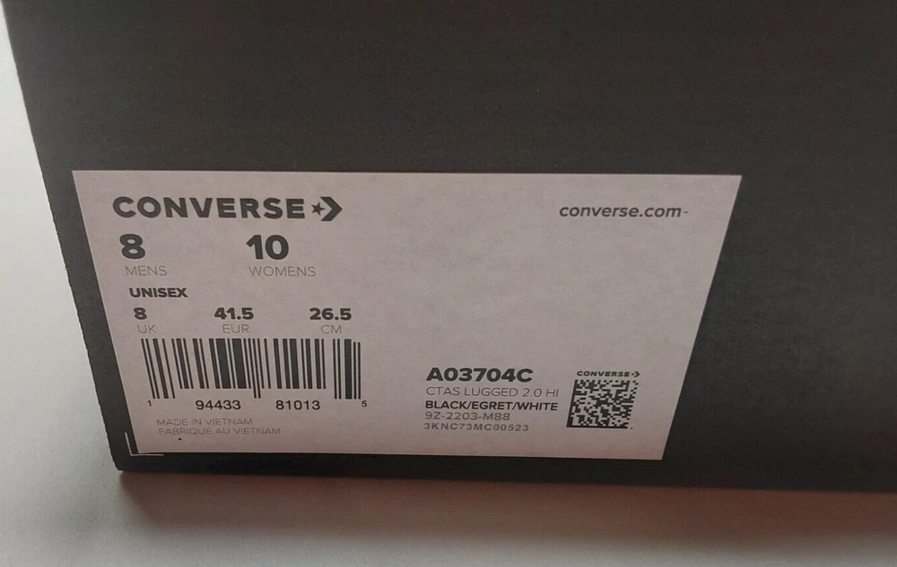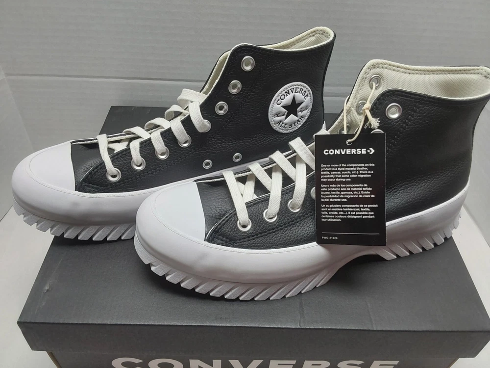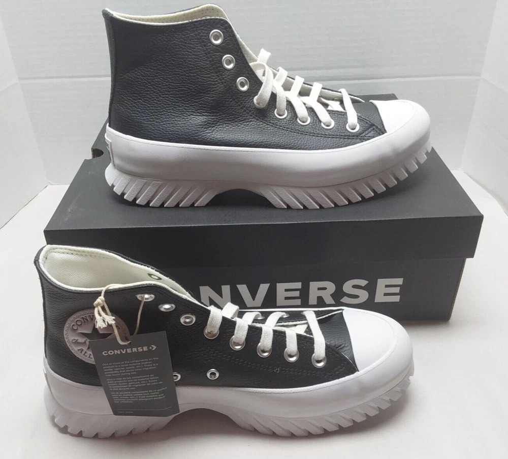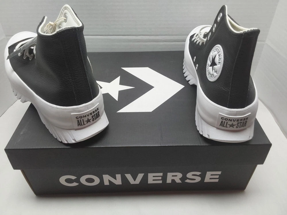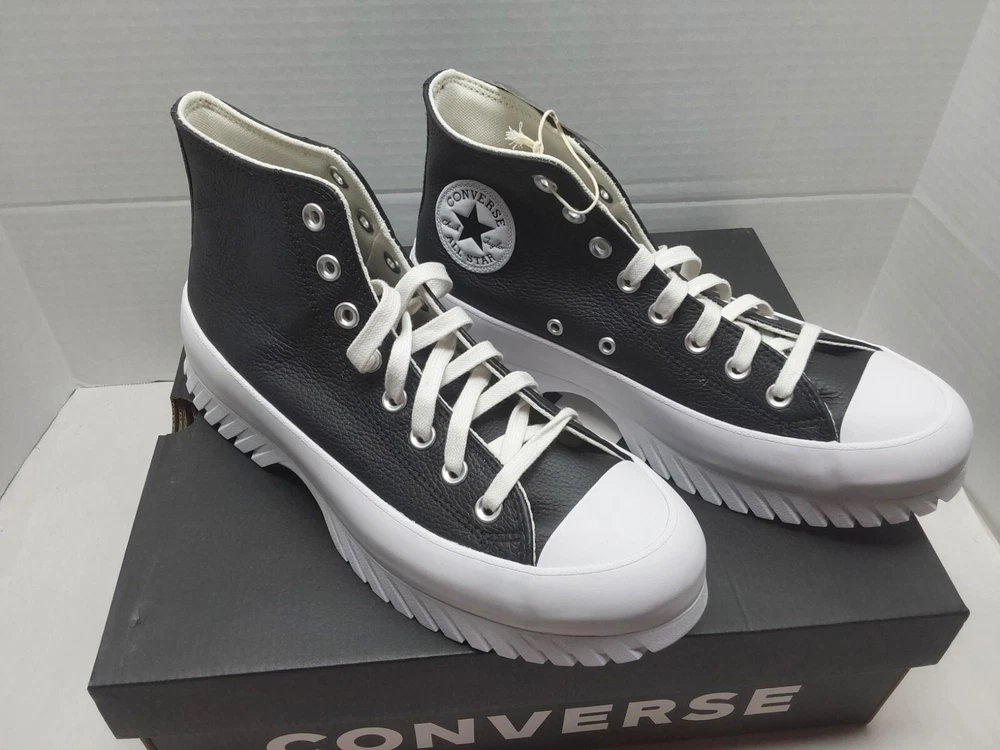 Converse Leather All Star Lugged 2.0 Mens 8 / Womens 10 A03704C Black White NIB........ Introducing the Converse Chuck Taylor All Star Lugged 2.0 Hi Leather sneakers, perfect for casual wear or workwear. With a lace-up closure and high-top shoe shaft style, these sneakers come in a black and white color with star-themed accents. They are made with comfortable leather upper material and a standard shoe width suitable for walking. These sneakers are part of the Converse Chuck Taylor All Star product line and feature the brand's logo, but are not customized. They are brand new with box and have never been worn. Don't miss out on adding these stylish and versatile sneakers to your shoe collection.
