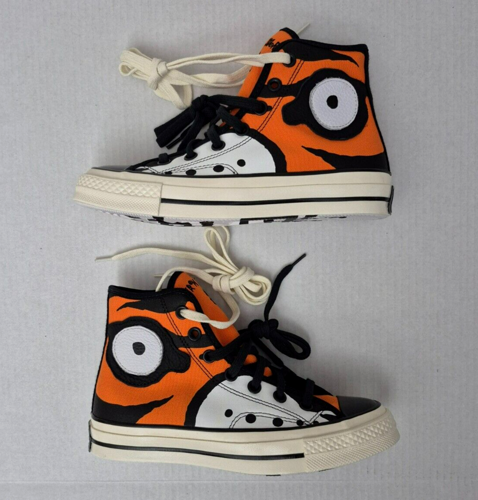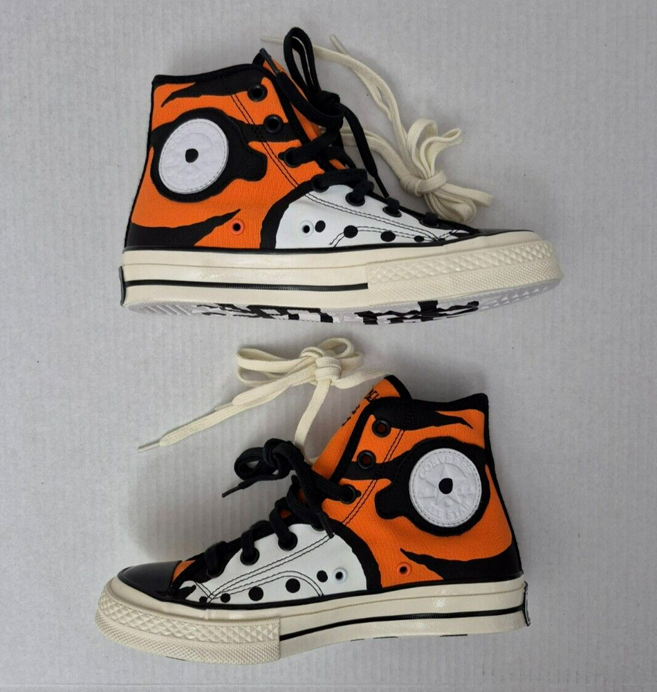 Converse Soulgoods Chuck Taylor All Star 70 High Top, Size: Men's 4.5 / Women's 6.5 Tiger Orange 169906C - New Without Box Stylish sneaker with a Tiger theme. Featuring a high top shoe shaft style and lace-up closure, these trainers are designed for teens. Men's size 4.5 / Women's size 6.5 The shoe is part of the Converse Chucks All Star Chuck Taylor product line and is suitable for casual wear and activewear, making it a versatile choice for walking activities during all seasons.