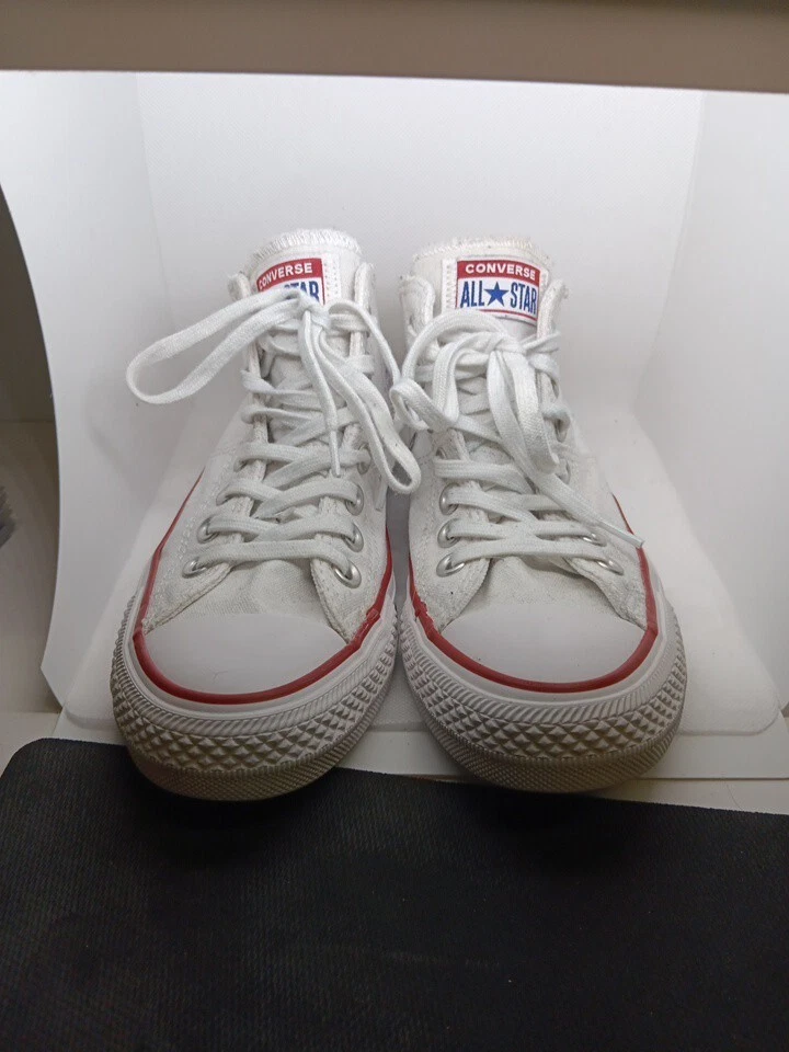 Elevate your casual wear with these white Converse Chuck Taylor All Star sneakers. Designed with a lace-up closure and low-top shoe shaft style, these sneakers are perfect for any occasion, whether it be activewear or casual outings. The canvas fabric type and breathable features make them ideal for summer, spring, and fall seasons. These unisex sneakers come in size 6.5 US and 4 UK, with a standard shoe width. The rubber outsole material and cushioned insole provide comfort and support for activities such as walking, weightlifting, school, and skateboarding. The Converse Chuck Taylor All Star product line and star theme add a touch of uniqueness to these classic sneakers.