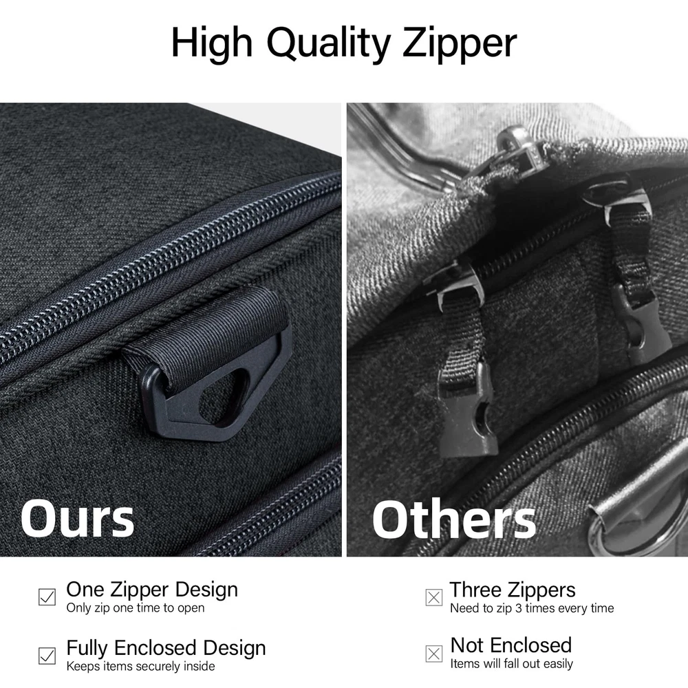 This garment bag is a game-changer for travel! The smart one-zipper design keeps everything secure while making packing a breeze. Lightweight yet spacious, it easily fits suits, dresses, or gym clothes without wrinkles thanks to the handy clips. Perfect for business trips or weekend getaways, it converts smoothly between duffle and hanging modes. The quality materials feel durable, and the compact size fits airline requirements. I love how organized my clothes stay—no more rummaging through luggage! The thoughtful pockets add extra convenience for accessories. Whether you're heading to a wedding or a meeting, this bag keeps your outfits looking sharp. Definitely worth every penny for frequent travelers!