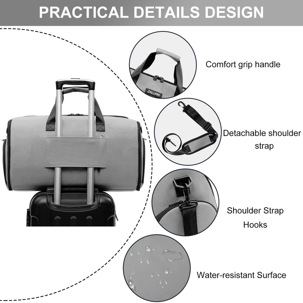 This convertible garment duffel bag is a game-changer for travel! The smart design effortlessly transforms from a weekender to a hanging bag, keeping clothes wrinkle-free. I love the 7 well-organized compartments—perfect for suits, shoes, toiletries, and essentials. The durable, water-resistant material holds up great, and the detachable straps make carrying a breeze. Super spacious yet compact enough for carry-on. A must-have for business trips or quick getaways!