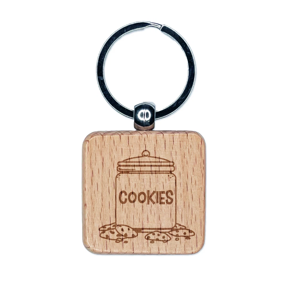 Cookie Jar Engraved Wood Square Keychain Tag Charm