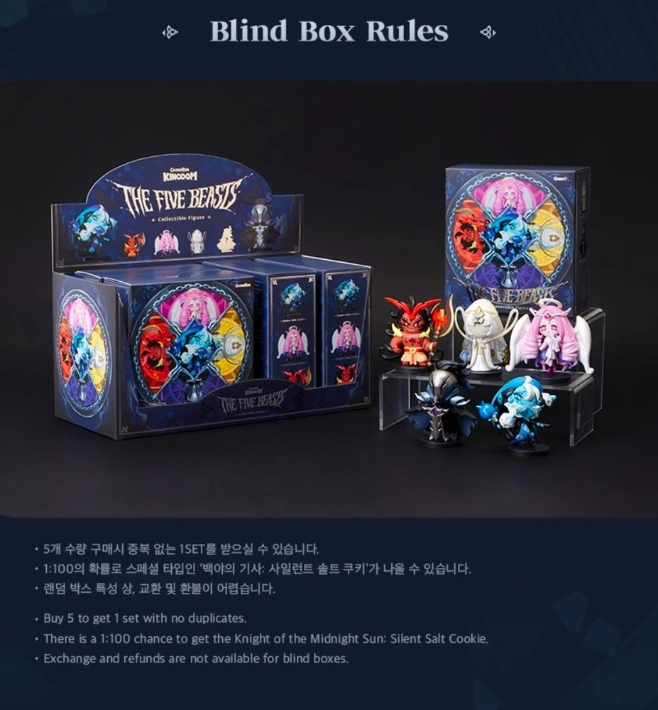 Cookie Run Kingdom Beast Cookies Collectable Figure Shadow Milk 5P Set Detailed Information Material: PVC, ABS Country of Manufacture: China Size: Figure: 7.3 x 7.3(cm) Package: 14 x 15 x 6 (cm) Knight of the Midnight Sun: Silent Salt Cookie is 1 in 100. Precautions for Handling Do not use for purposes other than the intended use of the product. This product is unsuitable for children under the age of 15; however, if used by a child, parental supervision is required. This product contains one random figure out of five standard types and one special type. Be careful not to put the product in the mouth, bite, or suck on it. There is a risk of choking due to small parts. Keep away from fire, high temperatures, direct sunlight, and moisture. The product may be damaged by strong impacts. Be careful not to get injured by the sharp parts of the product. Paint smudges, surface scratches, surface bubbles, or mold lines occurring during the figure production process are natural phenomena and do not qualify as grounds for exchange or return. ------------------------------------------------------------------------------------------------------- All the items we sell are 100% genuine. All the item will be shipped from Korea. Shipping Terms: Before I pay the bill It will be sent within 1-3 business days of receipt of your payment. ※※※ Import duties, taxes and charges are not included in item prices or shipping charges. These charges are the responsibility of the buyer. Shipping Method: Delivery Status Tracking Check Site === > https://www.aftership.com/ko/track Express ===> Fedex or DHL (2-10 business days with tracking number) Standard === > (with tracking number, 20-50 business days) Return Policy: We examine the goods carefully before shipping. If you are dissatisfied with your purchase, please contact us first. We'll find the best solution right away. ※※※ We accept a 30-day refund as a guarantee. The buyer has to pay for the return shipping fee. Unless you receive the wrong item or have quality problems. Contact Customer Service for more information on returns. Payment: All major credit cards can be paid through a secure payment processor. We ship to your eBay address. Please make sure your eBay address is correct before making a payment. Contact: Your positive feedback is very important to us. If you have any questions about your order, please contact us via eBay message to resolve the issue before leaving negative feedback or starting a dispute. I'd be happy to help you. We will reply within 1 business day (not including holidays). customs duties: According to Ebay Policy, Custom tax/Duty/VAT is the buyer's responsibility. If local customs charges customs/tariff/tax/intermediation fees/handling fees, The buyer will have to pay. So please check the tax rate at the local customs office before purchasing. We also do our best to reduce taxes and tariffs according to your request.