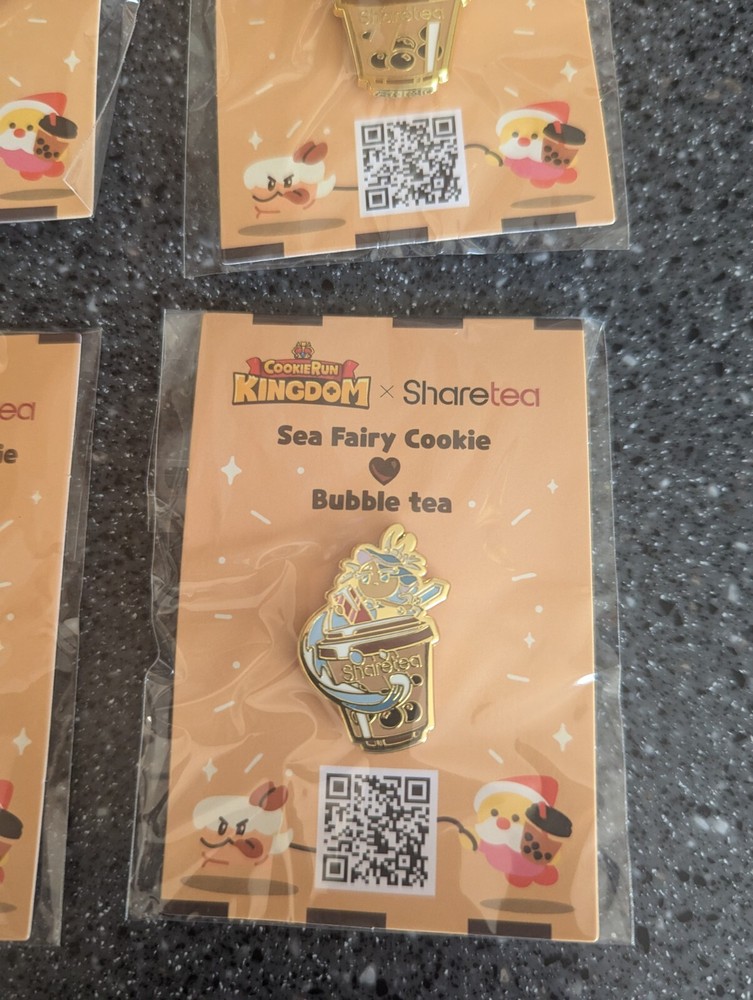 This limited time exclusive pins and keychain set is a must-have for Cookie Run Kingdom fans. Featuring the iconic characters from the popular game, this set includes pins and a keychain that are perfect for collectors and players alike. The Brand, Cookie Run Kingdom, is known for its unique and engaging gameplay that has captured the hearts of many gamers. Set Includes: Ginger brave & sugar gnome keychain, Milky Way cookie pin, pure vanilla cookie pin, sea fairy cookie pin, and caramel arrow cookie. Pictures shown as is. Please feel free to message me with any questions!