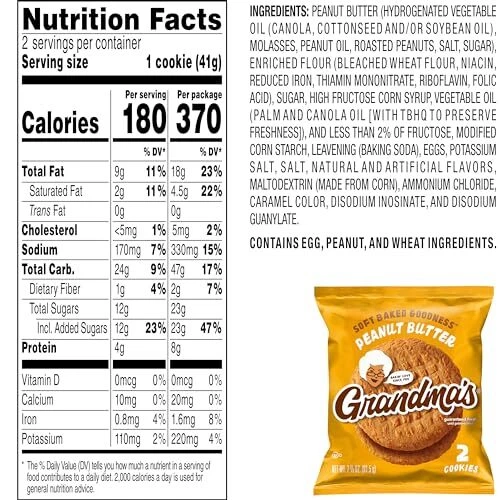 Delicous NEW Big Cookies. Includes 10 individual packs of Grandmas's Big Peanut Butter Cookies Every treat is baked with love Go to your happy place with every bite Great for portion control & snacking on the go The only thing better than one delicious cookie is another.