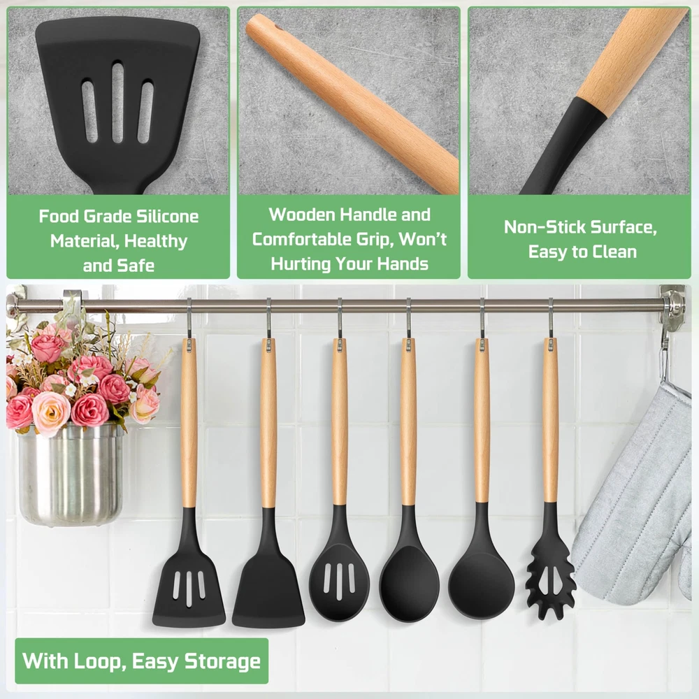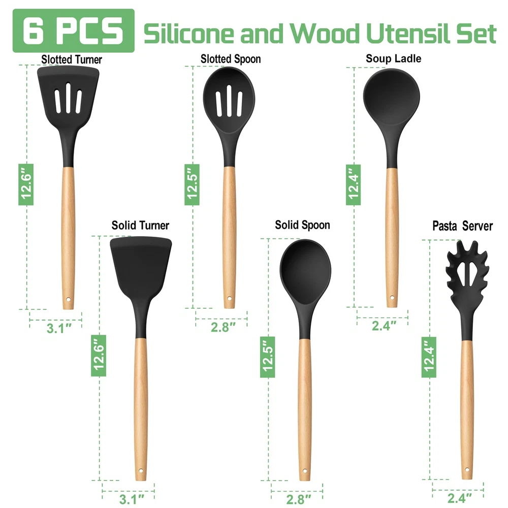Cooking Utensils Set, Silicone Kitchen Utensils with Wooden Handles Set of 6,...