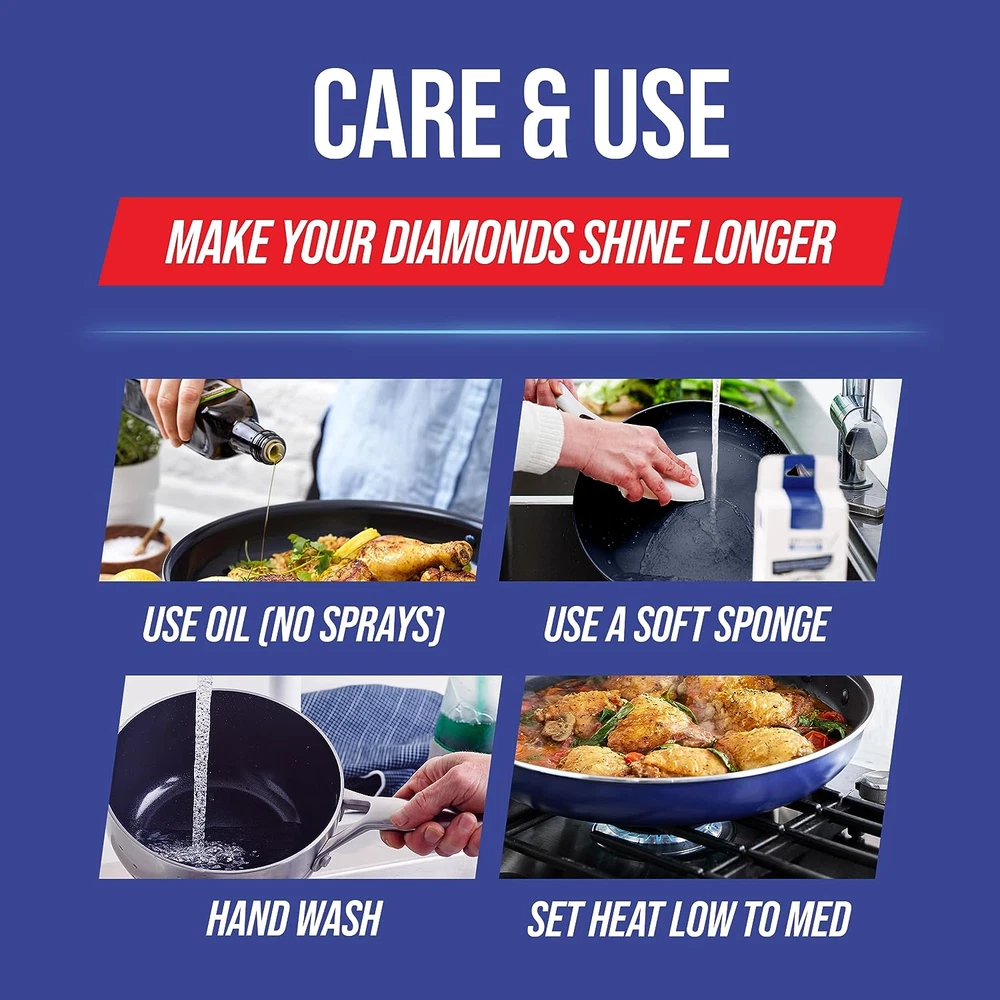 Store New Arrivals Add to Favorite View Feedback Contact Cookware Tri-Ply Stainless Steel Ceramic Nonstick, 9.5" Frying Pan Skillet, Pfas-Free, Multi Clad, Induction, Dishwasher Safe, Oven Safe, Silver Description Item model number CC003686-001 Style Frying Pan Capacity 3 Quarts Country of Origin China Has Nonstick Coating Yes Is Oven Safe Yes Product Dimensions 16 x 9.5 x 2.5 inches Material Diamond Infused PFAS-Free Ceramic Nonstick, Stainless Steel Shape Round Model Name Triple Steel Specific Uses For Product Sautéing, Frying, Everyday meals Is Dishwasher Safe Yes Item Weight 2.2 pounds Special Feature Gas Stovetop Compatible, Electric Stovetop Compatible, Induction Stovetop Compatible Color Silver Compatible Devices Smooth Surface Induction Global Trade Identification Number 00885837023046, 88583702304600 Handle Material Stainless Steel Recommended Uses For Product Sautéing, Frying Product Care Instructions Dishwasher Safe Size 9.5" Frying Pan Skillet TRIPLE STEEL CONSTRUCTION: Three-layer tri-ply stainless steel bodies deliver even heating for incredible browning, searing, and sautéing results 5X HARDER COATING & 10X LONGER LASTING: Our diamond-infused ceramic nonstick coating is 5x harder and lasts 10x longer than traditional nonstick, metal utensil safe TOXIN-FREE: Blue Diamond's healthy ceramic nonstick coating is free of PFAS, PFOA, lead, and cadmium for worry-free cooking VERSATILE COOKTOP COMPATIBILITY: Suitable for all stovetops, including induction, for maximum cooking flexibility EXTREME HEAT RESISTANCE: Mirror-finished stainless steel bodies are oven and broiler safe up to 600°F, glass lids up to 425°F COOL-TOUCH HANDLES: V-shaped cutouts in the stainless steel handles ensure they stay cool during stovetop use SPACE-SAVING DESIGN: Angled handle shape allows for easy stacking and storage EASY TO CLEAN: Dishwasher safe for convenient cleanup, though most messes wipe away effortlessly Shine on the stovetop with Blue Diamond’s Triple Steel collection. Blue Diamond Triple Steel features two stainless steel layers surrounding an aluminum core that extends throughout the pan to deliver responsive performance with unbelievable power. Our unique Midnight Diamond coating is an eye-catching update that works with the 3-ply body to promote fast and even heating, incredible durability, and dazzling results on all stovetops, including induction. Metal utensil safe, Blue Diamond’s diamond-infused coating is 5x harder and 10x longer lasting than traditional nonstick, and best of all they are toxin free! No PFAS, PFOA, lead, or cadmium! The stainless steel V-cutout handles keep the collection comfortable on the stovetop while their unique angle makes these pans stackable for easy storage. Glass lids provide an easy view at any meal in progress and optimal for steaming and grease protection. Dishwasher safe. Oven safe to 600°F, glass lids to 425°F. ABOUT US We offer the best prices around on high quality products. Our E-store includes media such as books, movies, music and games while offering electronics, toys, sporting apparel, clothing, tools, general home, garden items and more. SHIPPING We are always working hard to ensure your package arrives as soon as possible. Please understand that some factors like weather, high postal traffic, and the performance of shipping companies are outside of our control. We offer free shipping to the lower 48 states and ship within 2 business days of payment, usually sooner. We do not accept P.O. Boxes. Please provide a physical address. For shipping outside of the continental USA, we only use eBay's Global Shipping Program.The item is shipped to KY and then sent to the rest of the world. International customers are responsible for all duties and taxes. Continue to check out in order to calculate costs for shipping the item to your country. Messages regarding eBay's Global Shipping Program MUST be directed at eBay EXCLUSIVELY. RETURNS We offer a 30-Day Return Policy on items which you are not completely satisfied with. You have the option for a full-refund or an exchange of the item. No returns are available on items shipped outside of the USA. PAYMENT We accept PayPal. CONTACT US This page content is yet to come Please ad us to your favorite seller and visit again later Thank You CUSTOMER SATISFACTION We try our very best to make sure every customer is completely satisfied. If there's a problem, message us! We're happy to help. WE ACCEPT Copyright © 2021 AutoDS. | All Rights Reserved