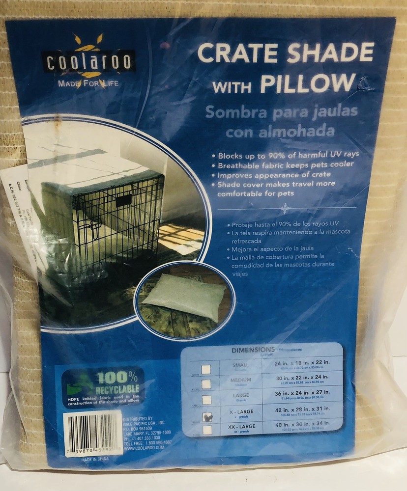 Coolaroo Dog Crate Shade Cover 42” x 28” x 31” Size XL Cover Only No Pillow. Condition is Brand New. Comes with everything you see in the pictures only. Please view pictures to evaluate for yourself. Shipped via USPS Ground Advantage.