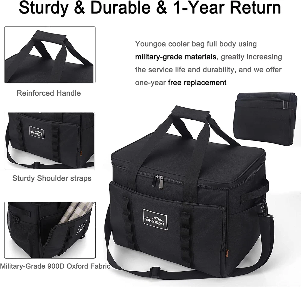 Cooler Bag 48-Can Insulated Leakproof Soft Cooler Large Collapsible Portable ... ??????????????????????????????? ????????????????????????????????????????: ???????????????????????????????????????????????? ???????????? ????????????????????????????????????????????, ???????????????????????????? ????????????????????????????????????????, ???????????????????? ????????????????????????????????????????????, ???????????????????????? ????????????????????????????????, ???????????????????? ???????????????????????? ???????????? ???????????????????????????????????????????????????????????? ???????Collapsible & Large Capacity????????: YOUNGOA soft sided cooler bag can be folded down to less than 3.9 inches, easily placed in a compact and small space, saving space. When opened, the size can reach 15.75''(L) x 12.20''(H) x 10.24''(W), the capacity is greater than 30L, and it can hold 48 cans of 330ml cola. ???????Premium Materials & Excellent Insulation & Leak-Proof????????: This soft cooler bag is made of military-grade 900D Oxford cloth, which is waterproof, wear-resistant and durable, high-quality thickened EPE pearl cotton inner core, longer-lasting heat preservation, seamless hot-pressed PEVA lining, insulation, leak-proof and easy to clean, Triple lock temperature, excellent thermal insulation effect, keep cool for more than 12 hrs when used with ice packs. ???????Structure & Function????????: 180???? full opening for easy loading and unloading, Molle webbing allows you to carry extra pouches and gear, 1 large front pocket for larger items like picnic mats, 2 large open side pockets for smaller items such as dinner plates, snacks, etc. (one side is an elastic mesh pocket), there is also a zippered pocket on the back for storing valuables. The design is simple yet functional, elegant yet practical. ???????Intimate Service????????: Taking your YOUNGOA picnic bag with your family members or friends, and have a pleasant outdoor activity, YOUNGOA will escort your event! If you have any problems, please let us know, we will provide you with a satisfactory solution and we also provide 1-year quality problem replacement and lifetime customer service for each YOUNGOA cooler bag, buy with 0 risk!