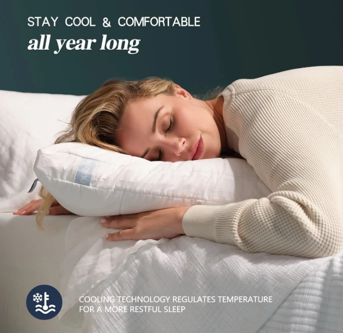 Nuzzle Cooling Adjustable Pillow for Side Sleepers, Luxury Standard Size Bed Pillow Hotel Collection - Best Adjust Height Soft Firm Pillow for Back, Stomach or Side Sleepers - Home Gifts Fill Material Polyester Pillow Type Bed Pillow Color White Size Standard SIze (Set of 1) Brand Nuzzle About this item 3-IN-1 ADJUSTABLE PILLOW: Designed for perfect spinal alignment, the Nuzzle pillow adapts to your sleep position. The slim layer offers gentle softness and support for stomach sleepers, while the medium layer promotes straight spinal alignment for back and combination sleepers. For side sleepers, both layers combine to provide maximum support and comfort. COOLING PILLOW FOR HOT SLEEPERS: Stay cool all night with our advanced temperature-regulating bed pillows. Made with patented phase-change fabric - originally developed for NASA space suits - it absorbs and releases heat to keep you at the perfect temperature. Experience refreshing, on-demand cooling for deeper, uninterrupted sleep. A great gift for moms and anyone who sleeps hot! THE PERFECT PILLOW FOR SIDE SLEEPERS & MORE: Designed to adapt to your shape and sleep position, our extra-soft pillow provides plush support, especially for side sleepers, easing pressure points for deeper sleep. Whether you sleep on your side, back, or stomach, it keeps you comfortable from naps to full nights of rest. NANOCOIL FIBERS FOR ZERO-GRAVITY SUPPORT: Experience weightless comfort every night with the Nuzzle pillow. Thousands of nano-coil gel fibers provide gentle, adaptive support, maintaining the pillow’s shape night after night. Designed to cradle your head and neck, it delivers a plush, cloud-like feel - just like a luxury hotel pillow. CHOOSE THE PERFECT SIZE: Our pillows come in two sizes to suit your needs. The standard size (16" x 24") is ideal for teenagers, college students, and compact spaces like dorms or hotel apartments. It’s also a great option for lean adults, guest rooms, or even as a travel pillow. Designed for durability, these pillows maintain their shape for 1,001 nights and are machine washable for effortless care. . We offer FREE shipping on all orders! . We ship within Five business days of payment, usually sooner. . We use a selection of shipping services such as UPS, FedEx, USPS etc. . We only ship to the lower 48 states, no APO/FPO addresses or PO Boxes allowed. . Local pickups and combined shipping options are not provided at this time. . Your satisfaction is a wonderful reward for our efforts. Please assist us by leaving a positive review if you feel pleased with our service. . In the event that you encounter any difficulties related to your order, please do not hesitate to reach out to us directly through the Messaging system on the Ebay platform. Kindly consider opening a COMPLAINT or a RETURN REQUEST as a last resort, only after all other possible measures have been attempted and we have been unable to provide you with assistance. . We will get in touch with you within 24 hours and make every effort to ensure your satisfaction. . Please rest assured of our service quality.