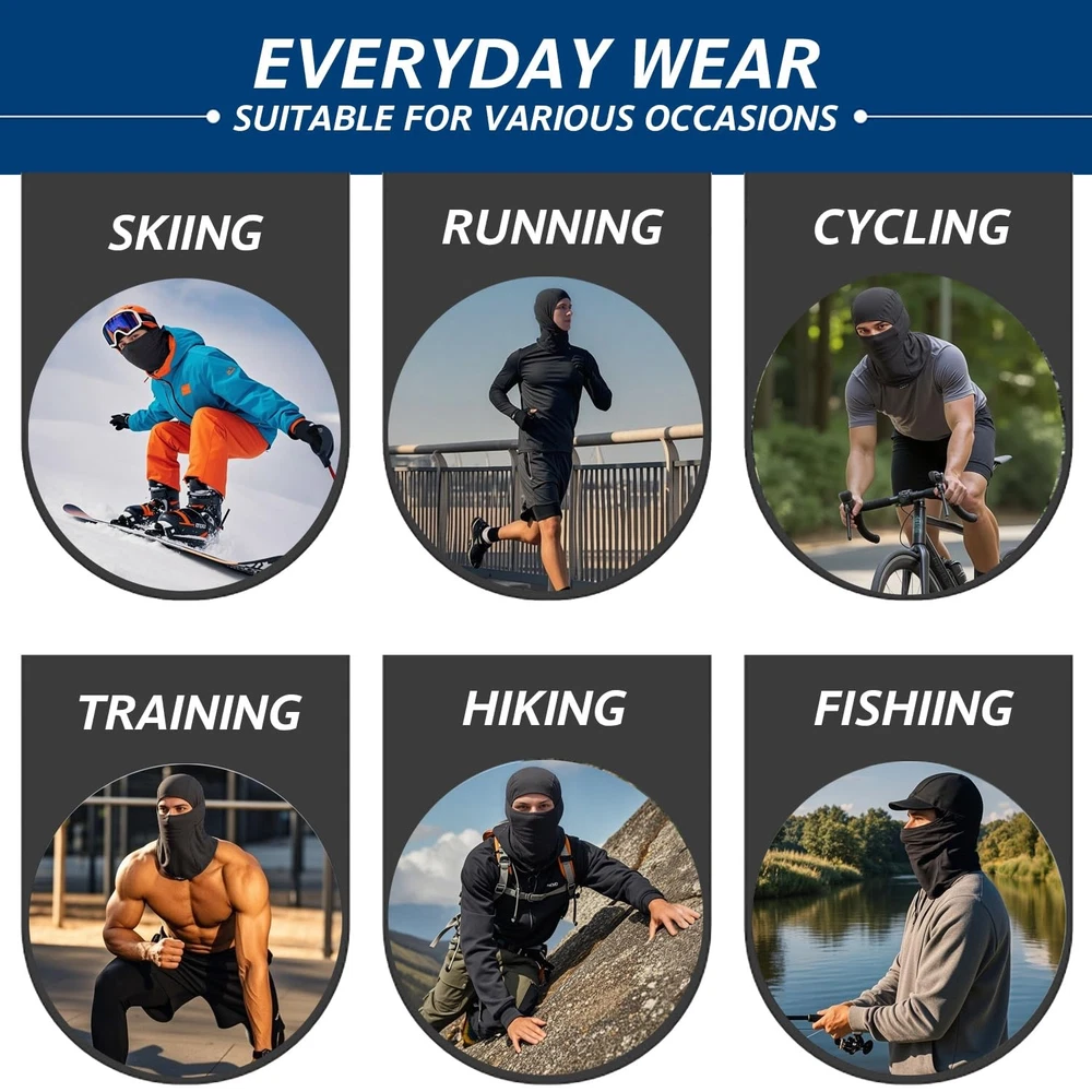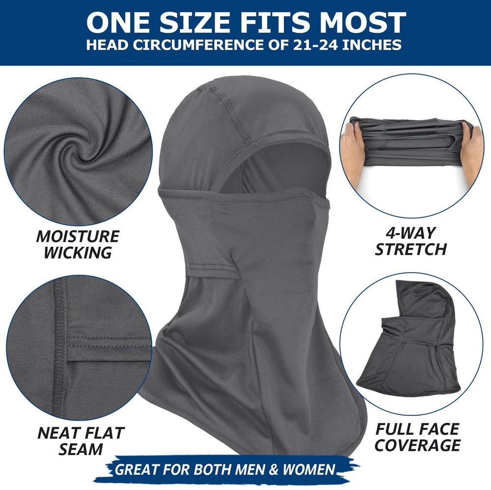 ski masks can effectively protect the face, mainly against wind, dust, and UV during sports such as skiing and skateboarding. COOL SENSE OF TOUCH: With great heat transfer performance and moisture absorption, heating up slowly when exposed to direct sunlight. Summer necessities for most men and women. ONE SIZE FITS MOST: Soft and elastic. Protect the face and neck from UV rays, dust, and wind. Wearing it for hours is still very comfortable. Enjoy outdoor activities to the fullest. VERSATILE HEADWEAR: Multifunctional accessories can be used for ski mask, balaclava hood, neck gaiter, do-rag, skull cap beanie, bandana face mask, hair tie or wristband. ALL YEAR ROUND: High gloss and smooth fabric is lightweight and breathable. It is ideal for skiing, cycling, fishing, snowboarding, hiking, training and other outdoor sports. Also suitable for costume mask prop. MACHINE WASHABLE: The balaclava mask is neatly flat sewn and durable for long-term use. Even after multiple washes, it can still maintain good condition. Both hand wash and machine wash cold are acceptable.