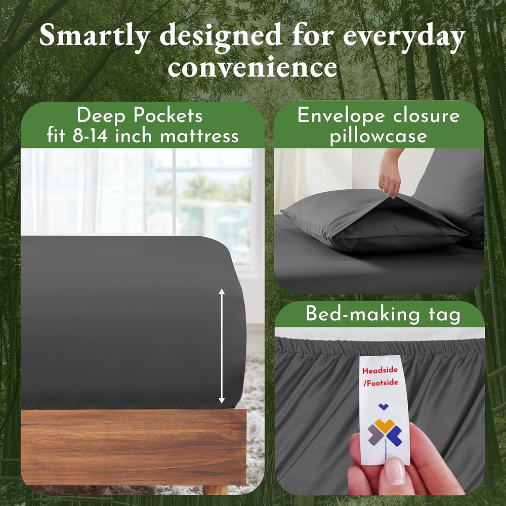 King Size 6-Piece Bamboo Rayon Cooling Bed Sheets for Hot Sleepers