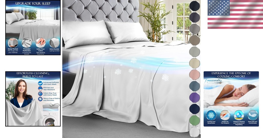 Cooling Bed Sheets King Set 4pcs Microfiber Bamboo Viscose Breathable ‹ › ‹ › ‹ › ‹ › ‹ › ‹ › ‹ › ‹ › Cooling Bed Sheets King Set - 4pcs Microfiber Bamboo Viscose Unwind in pure luxury - indulge in unrivaled comfort with our king sheets cooling set. With enhanced BreezeWeave Blend technology, our Bamboo Viscose Microfiber sheets offer you the perfect sleeping experience. Elevate your sleep to a whole new level of serenity and relaxation. Features: King size set includes 4 essential pieces for your ultimate comfort. Enhanced BreezeWeave technology for a breathable, smooth texture. Wicks away moisture to keep you cool throughout the night. Durable fabric that resists pilling and wrinkles for effortless elegance. Deep pocket design to accommodate extra-thick mattresses and pillow tops. Benefits: Stay cool all night long, perfect for hot sleepers. Experience reduced friction for enhanced sleep quality. Effortless care with easy washability to save you time. Crafted to fit standard mattress dimensions, ensuring a snug and secure fit. Wake up refreshed and ready to conquer the day with our cooling sheets. Why Choose Our Cooling Bed Sheets? Looking to improve the quality of your sleep? Sleep is often disrupted by the linens we choose, and our cooling bed sheets are here to change that. Made from silky-smooth fabric, they offer a luxurious experience designed to keep you comfortable and cool, no matter the season. With this king sheet set, indulge in lasting comfort that not only elevates your bedding aesthetic but also transforms your sleep quality. Say goodbye to tossing and turning and hello to a refreshing night's sleep. Order now to embrace the luxury of cool comfort! Shipping Free & Fast Shipping - We offer free shipping to most of the USA with a normal delivery time of 3-7 days. However, due to the current situation, additional delivery time (up to 3 weeks) may be required for some items. Alternative Carriers - We may use alternative carriers (e.g. USPS, FedEx, UPS, etc.) to ensure your package arrives safely and on time. Due to the use of multiple carriers, we are unable to provide a tracking number automatically. Handling Time - Orders are processed and shipped within 1-2 business days of receiving cleared payment. Shipping Restrictions - Shipping to Alaska, Hawaii, Puerto Rico, Guam, and other US territories may incur shipping charges or delivery restrictions. Please contact us before ordering, or your order can be refunded/cancelled. State Restrictions - There may be restrictions based on your state of purchase. For example, certain items may not be shipped to California due to state regulations. Contact for Tracking Updates - If you require tracking updates or have any concerns about the delivery of your order, please feel free to contact us, and we will be happy to assist you. Return 30-Day Hassle-Free Returns - We want you to be completely satisfied with your purchase. If you are not, you can return the item within 30 days of receiving it for a full refund or exchange. Easy Return Process - To start a return, simply contact us and we will provide you with a prepaid return shipping label and detailed instructions. Restocking Fee - There are no restocking fees for returns. However, the buyer is responsible for return shipping costs if the return is not due to a seller's error. Refund Processing Time - Refunds will be processed within 5 business days of receiving the returned item in its condition. Payment We accept all major credit cards, PayPal, and Apple Pay for your convenience. Your payment information is secure and encrypted to ensure a safe and seamless transaction. Please complete your payment within 3 days of purchase to avoid any delays in shipping. Feedback Your feedback is extremely important to us. We strive to provide the best products and customer service possible. If you are satisfied with your purchase, please take a moment to leave us a positive review. If you have any concerns or issues with your order, please contact us before leaving negative feedback. We are committed to resolving any problems and ensuring your satisfaction. Contact Us If you have any questions or concerns, please feel free to out to our customer support team. You can contact us through the eBay messaging system. We are available Monday to Friday, 9:00 am to 5:00 pm EST, and we will do our best to respond to your inquiry within 24 hours. Buy it now and enjoy a pleasant shopping experience! Unit Quantity: 1 set Material: Microfiber,Bamboo Viscose Microfiber,Bamboo Viscose Features: Breathable,Cooling,Wrinkle Resistant Care Instructions: Machine Wash Department: Adults Room: Bedroom Size: King Type: Sheet Set Color: White Pattern: Solid Thread Count: 200 or Less Style: Modern Shape: Rectangular GSM (Grams per Square Meter): Below 150 Unit Type: Unit