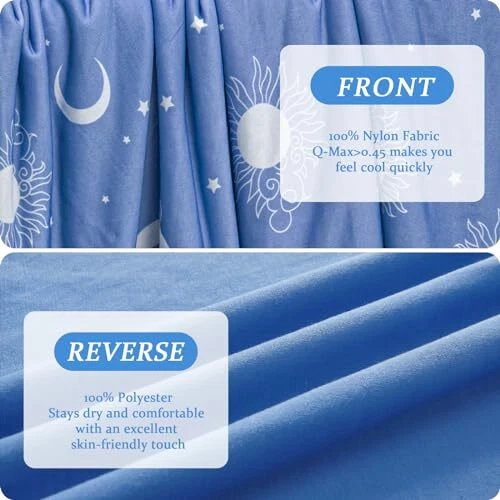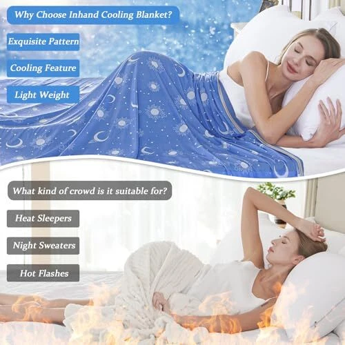 【BREATHABLE & COMFORTABLE】 We know that many people sweat at night or during naps, resulting in an inability to get a good night's sleep, especially in the summer. The cool fabric upgrade allows you to use in the summer more cool and fit your skin, keeping it breathable and dry. When you wake up, you won't feel sticky inside the blanket or covered in sweat. 【LONG-LASTING COOL FEELING】 Even in warm and hot summer weather, our special Arc-chill cooling fiber blanket (Q-Max>0.45) does an excellent job of keeping your skin cool. cool blanket is the perfect bedding choice for hot sleepers, night sweats, and hot flashes. 【VARIOUS USES】 If you night sweats when you sleep, our queen size blanket can accelerate the heat absorption and perspiration of the body surface, greatly improving the comfort index of summer life. You can also use big blanket for queen size bed, couch. Spend a special summer with the ones you love. 【PICK THE RIGHT SIZE】 We offer summer blankets in four sizes for different needs. For the 50"x60" cold blanket, just right for the single bed/couch/sofa. It is very light and easy to carry. Whether you're in the car or catching a plane, you can take the cooling comforter anywhere. 60"x80", 90"x90" and 90"x108" fit on the twin/full/queen bed. 【EASY CARE】 sky blanket is completely hand washable or machine washable. However, it is recommended to put the thin blanket in a laundry mesh bag to prevent tangling and damage, providing good protection for the lightweight cooling blanket. After washing, it is best to hang it in a cool place to dry, not tumble dry.