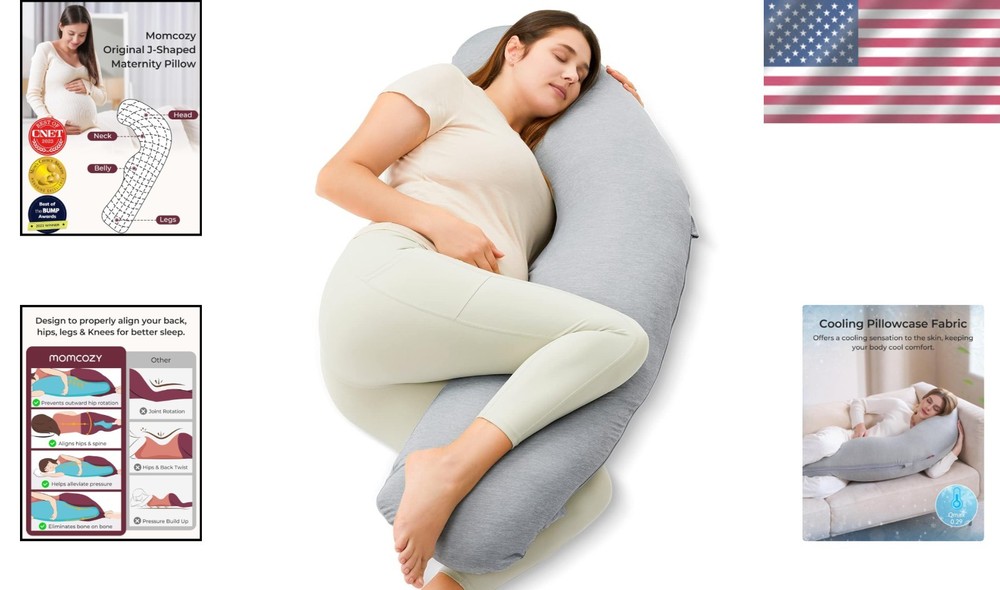 This maternity pillow is a game-changer for side sleepers! The cooling cover keeps me comfortable all night, and the J-shape provides perfect support for my back, hips, and belly. The plush filling is soft yet supportive, making it easy to switch positions without losing comfort. I love how it cradles my body, relieving pressure points and helping me sleep deeper. The quality is fantastic, and it stays cool even on warmer nights. Highly recommend for expecting moms or anyone needing extra support!