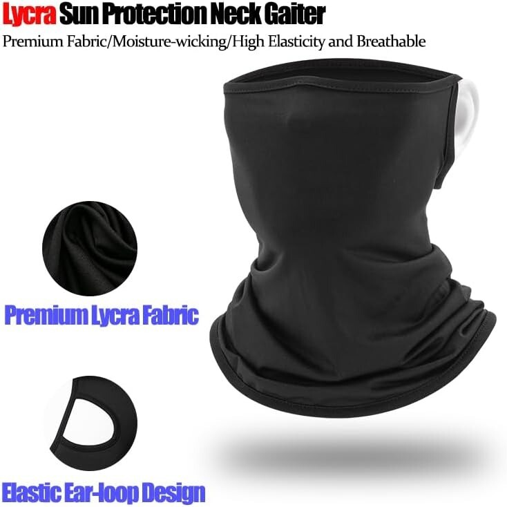 UV Sun Protection Neck Gaiter with Ear Loops - Balaclava Scarf & Bandana