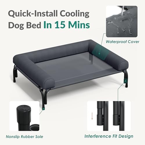 Cooling Raised Dog Bed for Medium Breeds - Easy Setup 35x26x8 Inches
