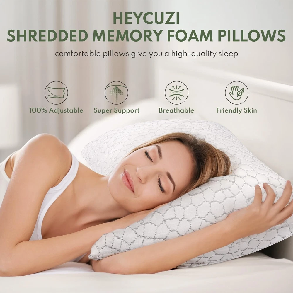 Cooling Shredded Memory Foam Pillow for Sleeping - Queen Size 2 Pack, Adjustable Bed Pillows Set of 2 for Side, Back, and Stomach Sleepers, Washable Breathable Cold Cover - CertiPUR-US Product Details Size: Queen Size (Pack of 2) Brand: HEYCUZI EAN: 6955543338728 MPN: Does not apply UPC: Does not apply Fill Material: Memory Foam Pillow Type: Bed Pillow Color: White Size: Queen Size (Pack of 2) Brand: HEYCUZI Fill Material: Memory Foam Pillow Type: Bed Pillow Color: White Size: Queen Size (Pack of 2) Brand: HEYCUZI Shape: Rectangular Special Feature: Cooling, Adjustable, Neck Support, Machine Washable Cover Cover Material: Polyester Pattern: Geometric Age Range (Description): All Ages Number of Items: 2 Product Dimensions: 29"L x 18"W Product Care Instructions: Machine Washable Pillow Cover, Shredded Memory Foam Fill is Non Washable Style: Modern Closure Type: Zipper Indoor/Outdoor Usage: Indoor Recommended Uses For Product: Multi Position Sleeper Item Firmness Description: Adjustable Theme: Cool Material Feature: Cooling Unit Count: 2.0 Count Fabric Type: 100% Memory Foam Item Weight: 9.02 pounds Manufacturer: HEYCUZI Date First Available: December 28, 2023 Comfort for Every Sleeper Pillows Queen Size Set of 2 - Discover the ultimate sleep experience with our adjustable shredded memory foam pillows, tailored to your individual needs. Whether you are a side, back, or stomach sleeper, our bed pillow adapts to your shape, providing unparalleled support and comfort. Say goodbye to sleepless nights and wake up feeling rejuvenated! Fully Adjustable to Fit Your Unique Needs - Too hard, too firm, too soft, too low, too hight, no support? experience the perfect balance of softness and support with our hotel pillows easy to adjust design. Access the memory foam fill to add or remove material based on your comfort preference. Achieve the right alignment and enjoy reduces snoring pain-free mornings with tailored support for your head, neck, and shoulders. Cooling Best Comfort Pillows- Perfect for hot sleepers, expertly designed for those who heat up at night. Our advanced cooling technology combines gel-infused, ventilated memory foam with a Luxury soft cover that enhances air flow and temperature regulation. This perfect blend keeps you cool and comfortable all night Easy to care for, the cover is removable and machine washable, ensuring your sleep is not only cool but also clean and refreshing. HEYCUZI Premium Memory Foam Pillow - Certified for Your Safety - Sleep with confidence on HEYCUZIs superior shredded memory foam pillows, crafted for enduring comfort and resilience. Each pillow is made from freshly produced, top-grade memory foam, ensuring long-lasting support without flattening. holding both CertiPUR-US certifications, which attest to our foam's odorless safety and absence of harmful chemicals. Ideal for every sleeper, HEYCUZI pillows guarantee a safe, and restful night. Committed to Your Satisfaction HEYCUZI - Best pillows for sleeping we stand behind the superior quality of our pillows tailored for all sleep positions, If our pillow doesnt meet your expectations, reach out to our dedicated customer support team. We promise to provide you with an immediate solution to enhance your sleeping comfort. Embrace a sleep transformation with HEYCUZIwhere your comfort is our first commitment. Tips Before Use - Our pillows are delivered compressed. Simply unbox, give them a gentle pat to fluff, and allow 24 hours to expand to their complete, supportive form. Cooling Pillow Tips - No pillow stays cool forever due to ambient temperatures. Enhance and prolong cooling by using it with air conditioning or a fan, ensuring a comfortable sleep.