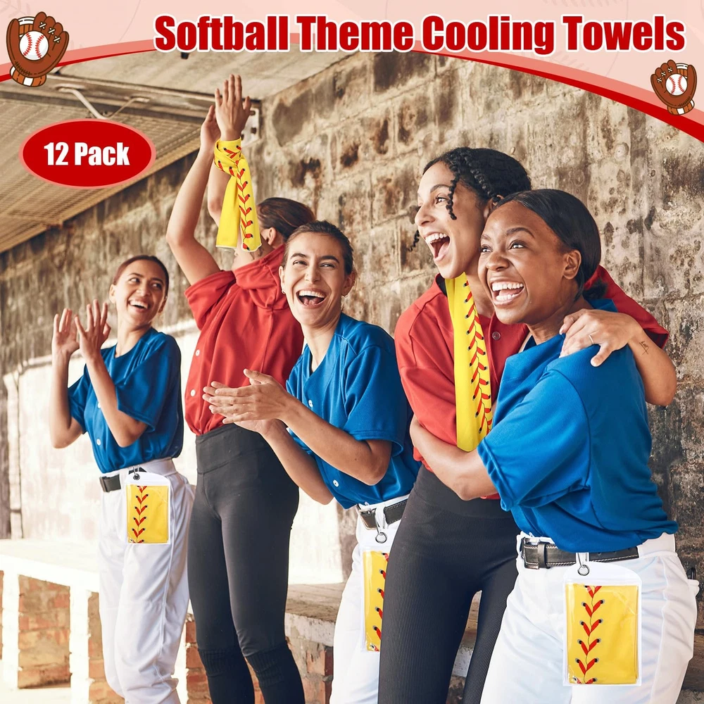 Features: The cooling exercise towel has sweat wicking properties, making them suitable for workouts, sports, or other outdoor activities. The structure of sport towel provides breathability and thereby intensifying its cooling effect, ensuring you remain comfortable and refreshed. Specifications: Material: microfiber Color: classic color Size: about 40 x 12 inch Package includes: 12 x Towels with bags Notes: Manual measurement, please allow slight errors on size. The color may exist a slight difference due to different screen displays. Convenient Package: the package includes 12 of workout towels, ensuring that you experience the comfort and coolness whenever you need; The towels also come with convenient carrying bags, helping to keep the towels easily accessible Quality Material for Cooling Effect: made from microfiber, the cooling towels bulk provides immediate relief from the heat; The use of fibers not only enhances the absorbency but also promotes quick evaporation, delivering a cooling effect that lasts for hours Proper Size for Your Needs: with a generous size of 40 x 12 inches, this softball towel provides sufficient coverage to wipe off sweat or cool down; This size is also convenient for tying around your neck or head to experience consistent cooling during intense activities Appealing Design: our gym towels come in a classic design, featuring a softball print that adds some fun and style to your workout or outdoor activities gear, ensuring you play hard and keep cool, yet look good Easy to Use: first, wet the workout sweat towels at normal temperature, twist it gently, then shake it off to achieve the cooling effect immediately; However, it should be noted that the cold sports towels are only suitable for absorbing sweat and cooling; It does not have strong water absorption capacity and cannot be applied for face washing and bathing