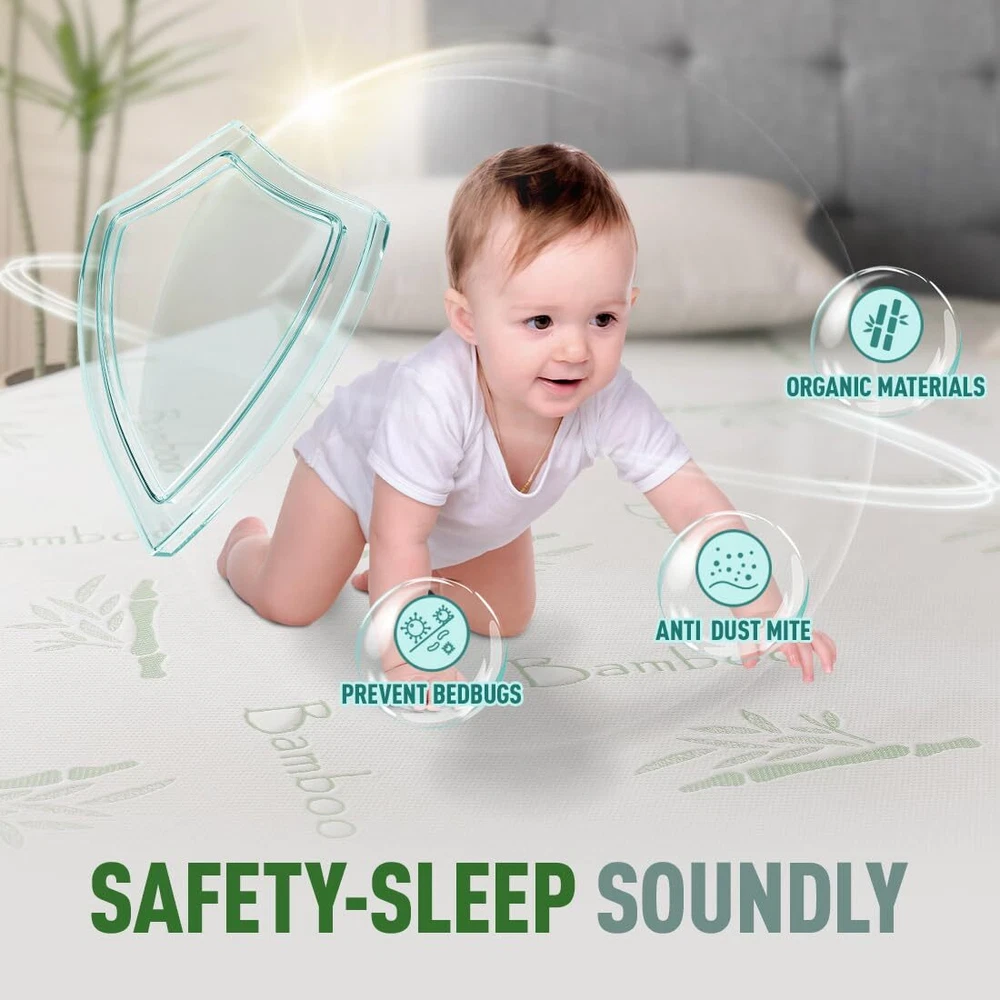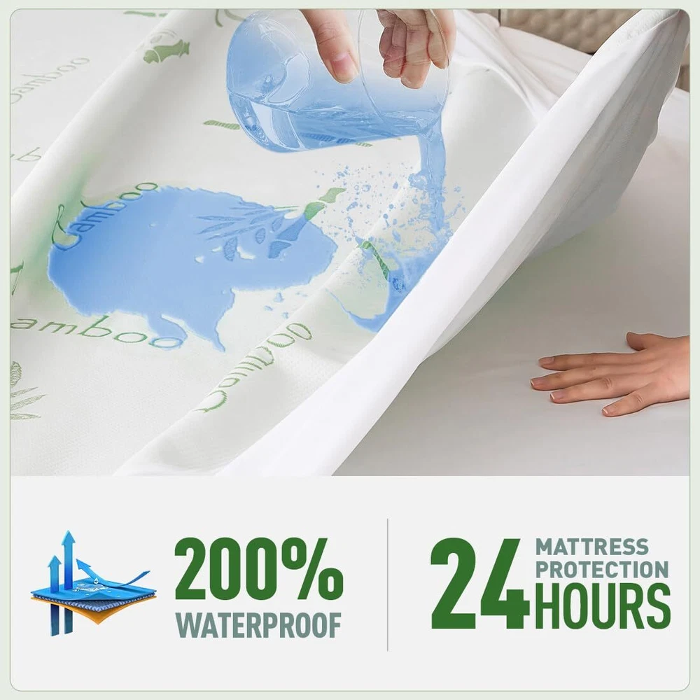 Fort Knox of Waterproofing: Picture this - a glass of red wine tips over on your bed in the middle of a movie night, or your furry friend has an unexpected accident. Panic no more! Our mattress protector is armed with cutting-edge double-layered TPU technology, creating an impenetrable shield that laughs in the face of spills, leaks, and any liquid mishaps. Ideal for every American household, whether you've got energetic turning the bed into a trampoline, cuddly pets sharing your sleep space, or seniors in need of worry-free comfort. Silky Cloud Comfort: Close your eyes and imagine sinking into a cloud of pure luxury. That's exactly what our protector offers, crafted from the crème de la crème of rayon fiber. This isn't just fabric; it's a caress for your skin. With a texture so velvety and sumptuous, it transforms your bed into a haven of relaxation. You'll look forward to bedtime as if it were a first-class journey to dreamland, every night. Moisture Vanquisher & Odor Eraser: Say goodbye to those stuffy, sweaty nights! Our state-of-the-art 3D air technology is like having a personal dehumidifier built right into your mattress cover. It sucks up sweat and moisture faster than you can say "good morning", leaving the surface bone-dry and your sleeping environment as fresh as a spring breeze. Not only does this keep you feeling rejuvenated, but it also wards off any unwanted odors, ensuring your mattress stays hygienic and odor-free. It's like a breath of fresh air for your bed, literally. Chill Zone for Restful Slumber: When the mercury rises and those hot American nights set in, our mattress protector has your back - or rather, your whole body. Engineered with breathable fiber fabric that's a heat-dissipating wizard, it channels air like a , whisking away the warmth and replacing it with a cool, refreshing breeze. Unlike ordinary polyester or cotton, the rayon fiber construction acts as a superconductor of coolness, preventing overheating and guaranteeing you a deep, restful sleep. You'll wake up feeling like you've been sleeping in an alpine meadow instead of your bedroom. Tailored Perfection & Silence Guaranteed: We know the struggle of ill-fitting bedding all too well. That's why our protector is custom-designed for Twin XL(39" x 80") mattresses, complete with deep pockets and elastic straps that hug your mattress from 6" to 21" like a second skin. No more wrestling with sheets that come loose in the middle of the night or dealing with annoying rustling noises. It's just you, your peaceful slumber, and a mattress protector that fits so perfectly, you'll forget it's even there.