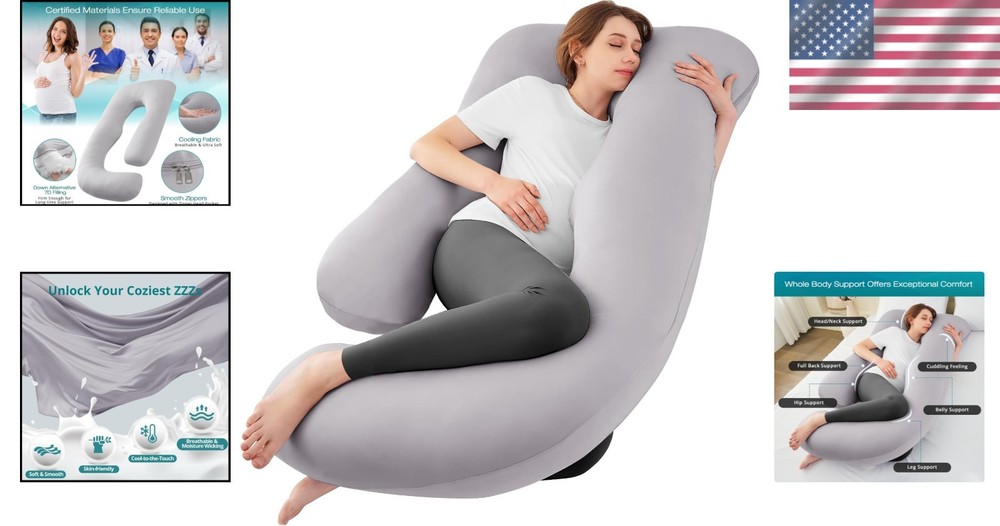 This pregnancy pillow is a game-changer! The U-shape cradles your body perfectly, relieving pressure on hips, back, and belly. The cooling fabric keeps you comfortable all night, and the soft yet supportive filling molds to your shape. At 57 inches, it provides full-body support whether you're side sleeping or lounging. The breathable cover is easy to remove and wash. After trying cheaper pillows, this one's premium quality makes it worth every penny - finally getting restful sleep during pregnancy!