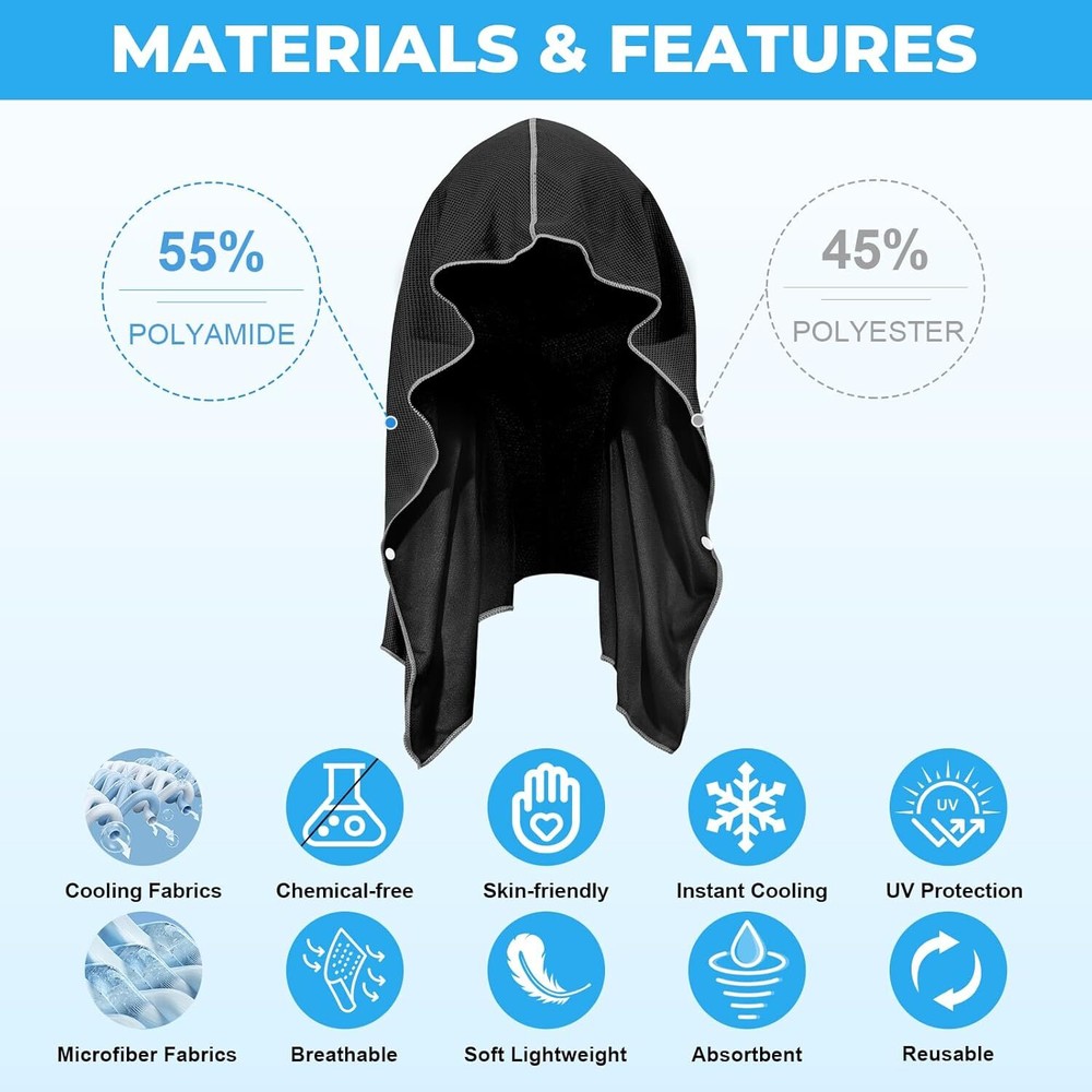 1. This cooling hoodie towel is a game-changer for outdoor activities! The microfiber fabric feels incredibly soft, and the instant cooling effect is amazing—perfect for workouts, beach trips, or just beating the heat. It dries super fast, offers great UV protection, and stays breathable even during intense use. Lightweight and chemical-free, it’s a must-have for anyone who loves staying cool on the go!