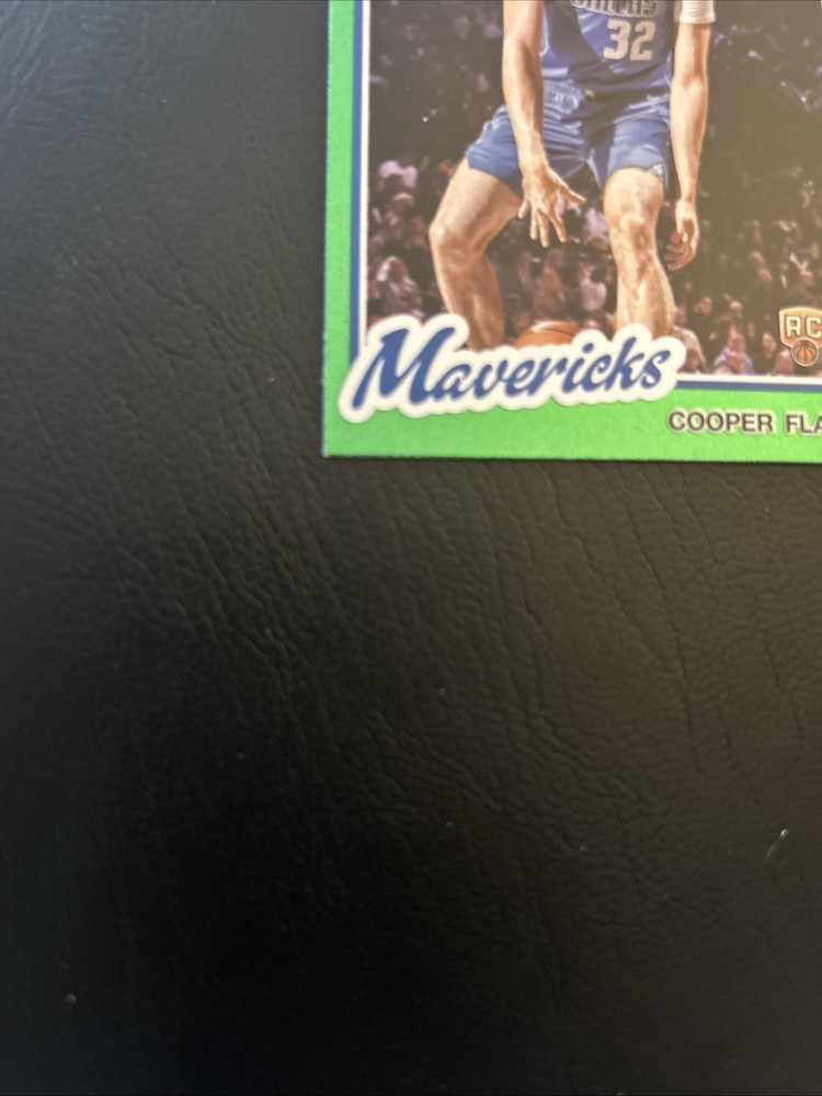 The product is a 2025-26 Topps Basketball trading card featuring Cooper Flagg of the Dallas Mavericks. This particular card is a Green Foil parallel with a serial number of /99, making it a Short Print. It is part of the 45th Anniversary set, adding to its collectible value. This rookie insert card is a unique addition to any basketball trading card collection, especially for fans of the NBA and Topps brand.