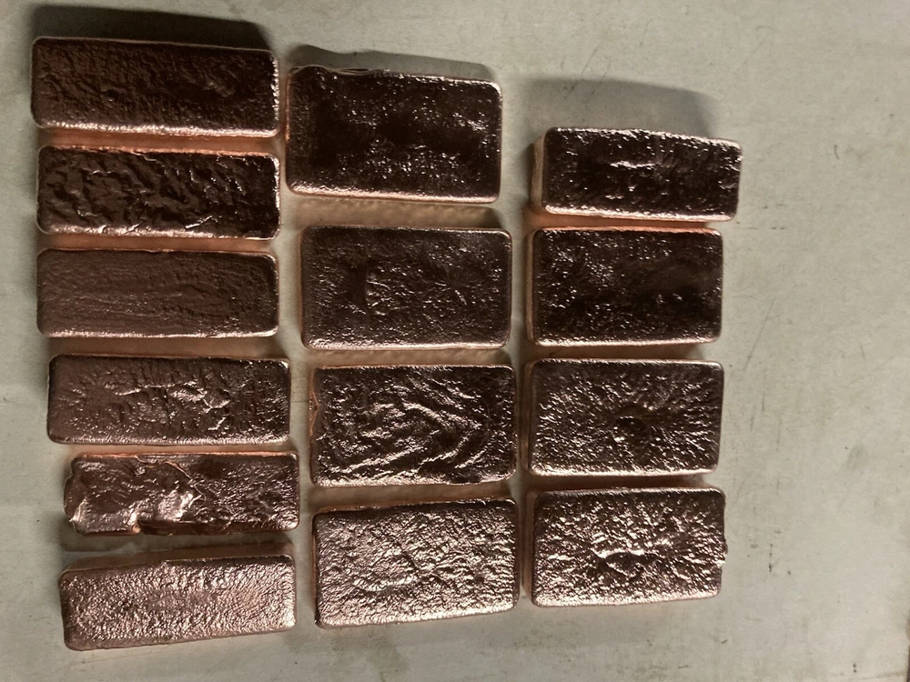 Copper, 20+Lbs Copper Ingots Hand Poured. Condition is "Used". Shipped with USPS. All ingots vary in size and weight they are all hand poured! Ingot Sizes are mixed and matched to reach desired bulk weight .999 pure copper made from back stock clean copper wire then wire brushed to perfection If you like our stuff visit us at CUIngots.store Or Like and subscribe on YouTube @ CUIngots