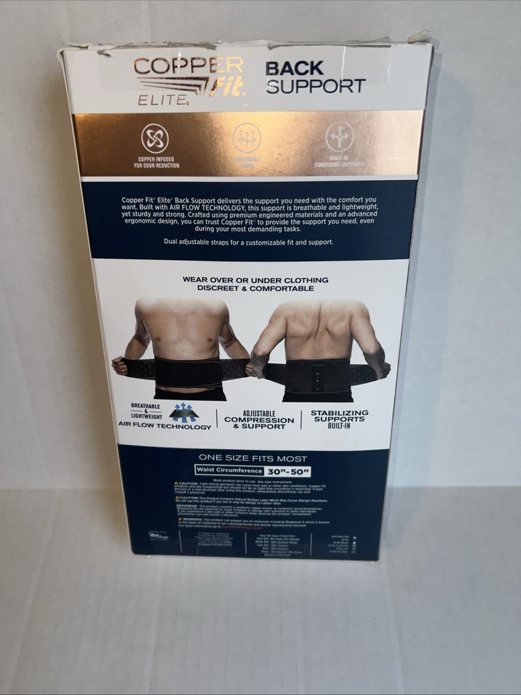 Brand:Copper FitColor:BlackMaterial:CopperFeatures:AdjustableType:Copper Fit Elite Air Back Bracegtin13:754502052608UPC:754502052608Body Area:BackSize:One Size Fits MostMain Purpose:Compression, Back Support