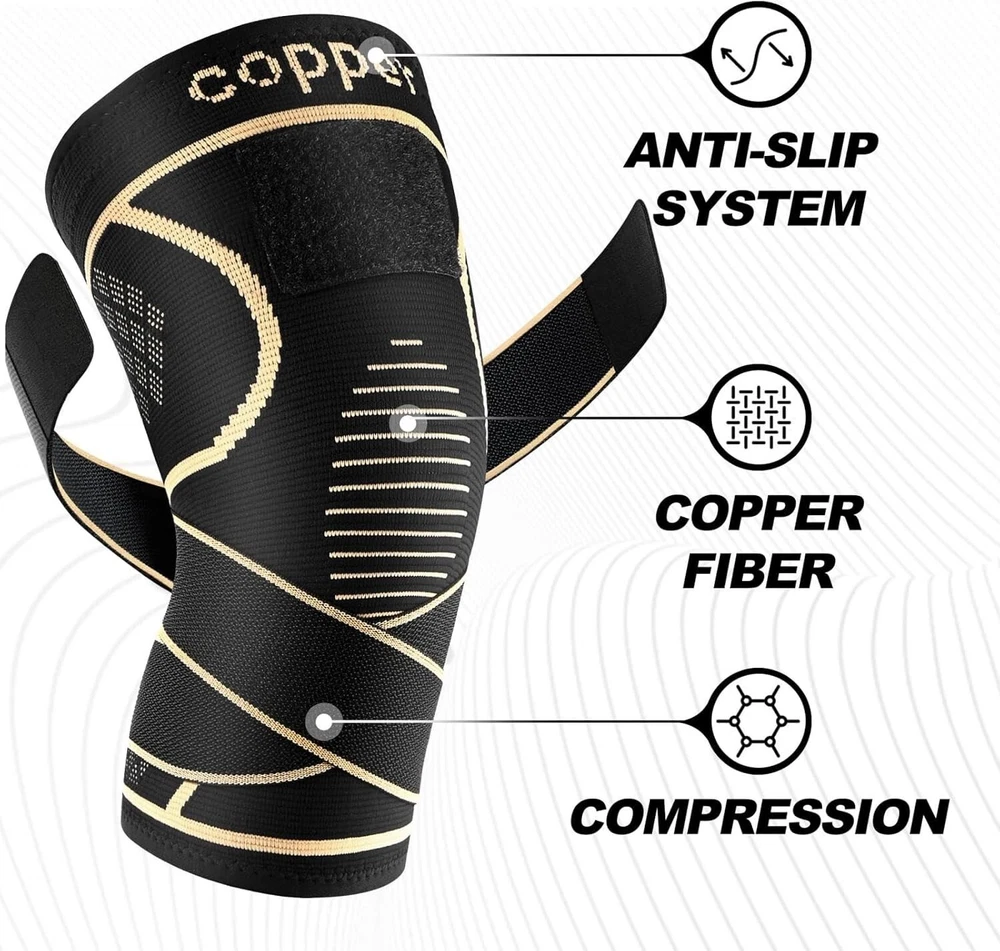 nylon Great Protection: Ergonomically designed copper knee pads use the best compression technology to achieve full protection.Cushioning and decompression,disperse knee pressure,improve blood circulation and protect knees from injury. Comfortable: Leg compression sleeves are made of a new 3D knitted fabric with good breathability and sweat absorption. Anti-slip: Special knitting technology design,with two straps,to ensure that your sleeves always stay in place and maintains joint stability,effectively disperses pressure. Multifunction: Our knee sleeves is perfect for Meniscus Tear,ACL,Arthritis,Joint Pain Relief and more.Widely used in cycling,hiking,weightlifting,running,basketball,volleyball and more! Buy with Confidence: If you have any questions,please feel free to contact our professional customer service team.If you are not satisfied with your purchase,please feel free to contact us,we will give a full refund or free replacement.❤️Best gift for yourself / Please Check Size Chart❤️