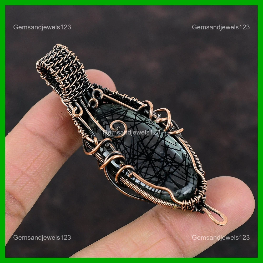 Note : Due to the natural formation of this gemstone. Slight Variation in design and color are to be expected. Welcome to gemsandjewels123 Mothers day Sale Copper Oval Black Rutile Gemstone Birthday Wire Wrapped Pendant Handmade Pendant, Wire Wrapped Pendant, Wire Wrapped Jewelry, Copper Pendant, Copper Wire Pendant, Wrapped Jewelry, Wire Wrap Pendant, Wire Wrap Jewelry SKU : VFWP-701 Gemstone : Black Rutile Stone Shape : Oval Metal Purity : Unknown Copper Length : 74 Millimeters Width : 30 Millimeters Copper has been used for jewelry making for thousands of years, dating back to ancient civilizations such as the Egyptians, Romans, and Aztecs. Copper was valued for its beauty, versatility, and durability, and was often used to make everything from jewelry and coins to cookware and tools. In addition to its historical significance, copper jewelry also offers several benefits. Copper is a natural conductor of heat and electricity, which makes it ideal for energy healing and therapeutic purposes. Wearing copper jewelry is believed to have various health benefits, such as improving circulation, reducing inflammation, and boosting the immune system. Some people also believe that copper jewelry has the ability to balance energy and improve mood. For Mother's Day Gift For Father's Day Gift For Promise For Valentine's Day For Halloween Party For Christmas Day Gift For New Year Party For Mom For Her If you can't find the information you need or need some advice for your design? Feel free to contact us. We are fast to reply :) All our work is made by hand with Love and Care in our workshop Thank you so much for visiting and hope you enjoy shopping with us gemsandjewels123 is committed to delivering the best quality sterling silver jewelry to customers. As a handmade jewelry manufacturer, we offer an extensive selection of copper gemstone jewelry that showcases the brilliance of our craftsmanship. We are an experienced handmade jewelry supplier with expertise in embellishing gemstones to suit every style. We offer you the liberty to create your jewelry ensemble with sparkling, earthy, and pure gemstones. Our Talented artisans masterfully handcraft each piece of jewelry you see here. Our pieces are made with genuine gemstones. The one-of-a-kind piece you see here is the same exact piece you will receive.