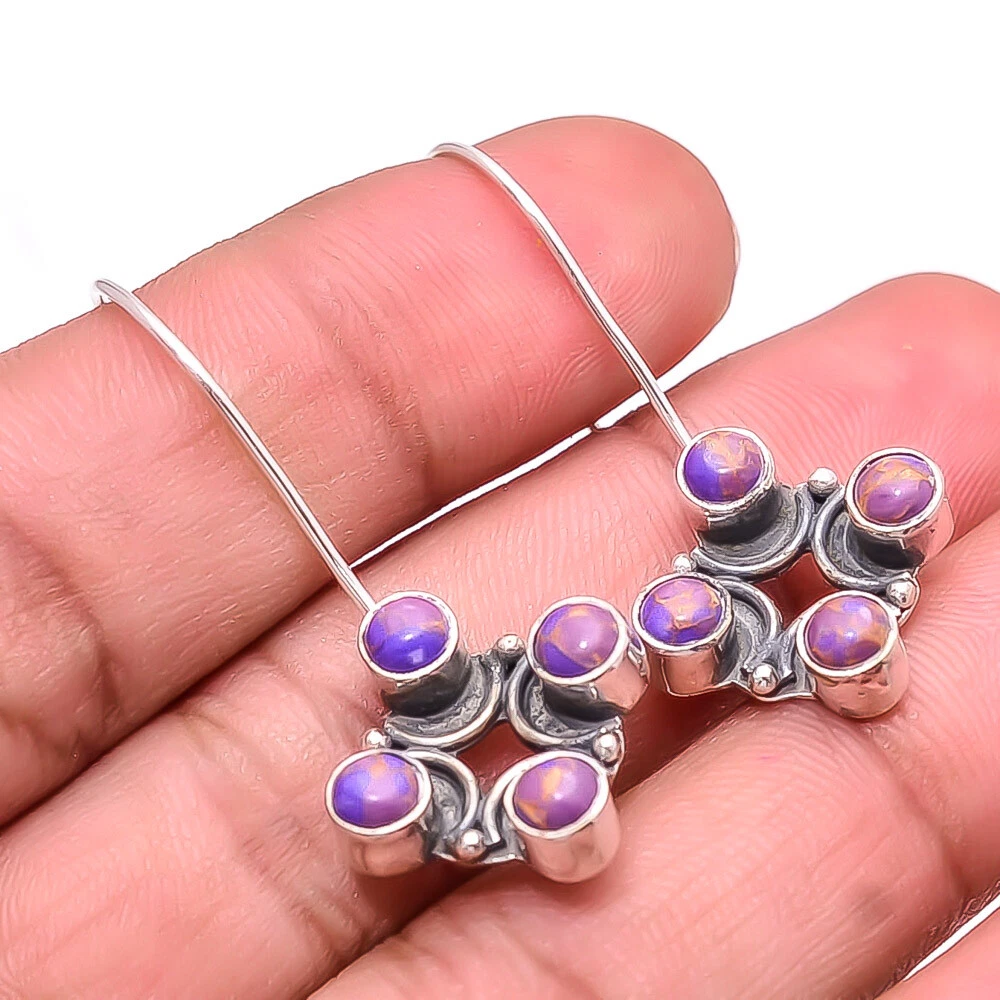 Theme Beauty Main Stone Depth As Seen in Picture Main Stone Length As Seen in Picture Main Stone Width As Seen in Picture Seller Warranty Yes Shape As Seen in Picture SKU E_9357_226_19 Main Stone Cut Type Cabochon Main Stone Size 4X4 Mm Antique Yes Handmade Yes Type Earring Style Drop/Dangle Metal Sterling Silver Metal Purity 925 Parts Per 1000 Base Metal Sterling Silver Total Carat Weight 21.5 Main Stone Copper Purple Turquoise Main Stone Creation Lab-Created Main Stone Shape Round Main Stone Color Purple Main Stone Treatment Lab-Created Material Gemstone, Stone Number of Gemstones 8 Item Length 1.56 Features Engraved, Nickel-Free, Handcrafted Ear Area Lobe Brand Unbranded Country/Region of Manufacture India Country of Origin United States Color As Seen in Picture Diamond Clarity Grade Not Applicable Number of Diamonds As Seen in Picture Item Diameter As Seen in Picture Gemstone Clarity Grade Opaque Diamond Color Grade Not Applicable Customized No Colored Diamond Intensity Not Applicable Certification 100% Genuine Guaranteed Setting Style Bezel Occasion Christmas, Birthday, Anniversary, Engagement, Wedding, Valen Shipping & Handling - Charge - 1st item-5.90 And Additional item-1.90 Handling Time - 1 Days . Delivery Time - 2 TO 3 DAYS. Shipping Service - USPS First Class Package 2 -3 Days. Returns - 1.We offer a 100% Money Back Guarantee minus shipping for 30 days after receiving the Item / item's. 2..The item must not be altered or damaged in any way shape or form. 3.Upon receiving these items your payment will be refunded. 4.Email us for return instructions before sending merchandise back. 5.Please allow up to 1 business day for all returns to receive credit. 6.Sizing does not affect the return policy. Payment - We accept PayPal for Payment ,should made with in 14 days once buying or winning done , in case of late information expected .