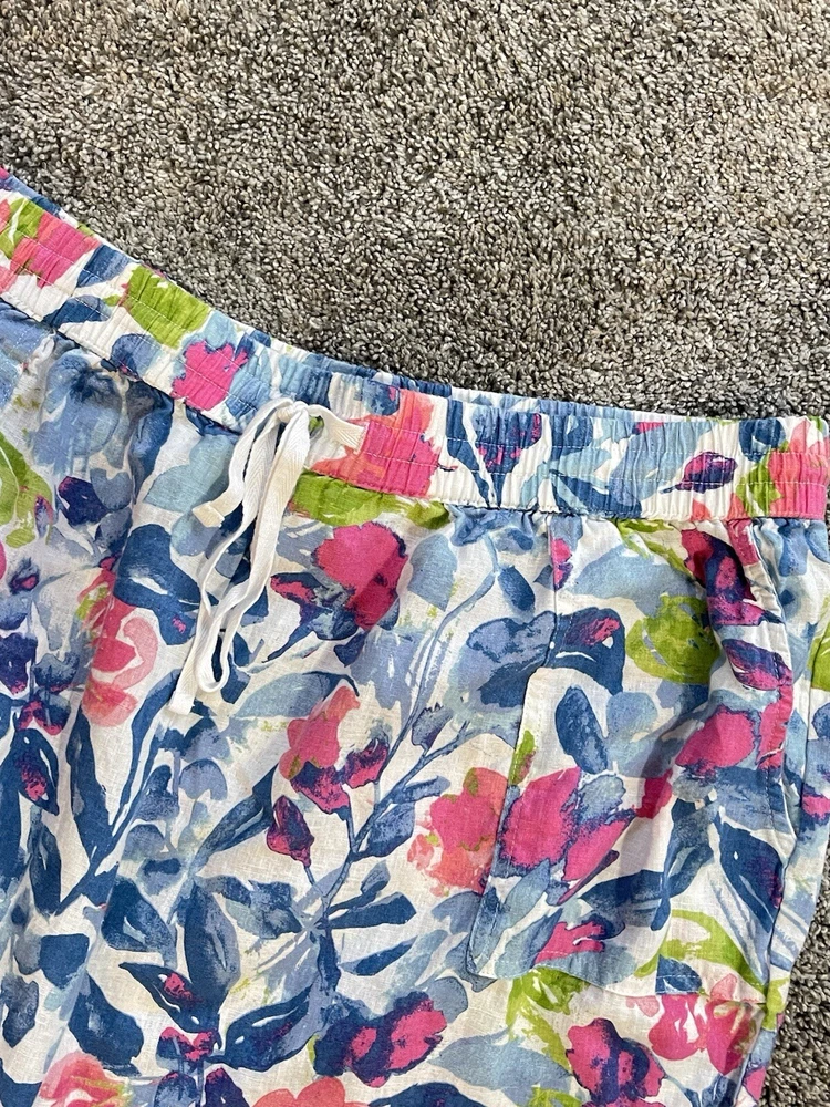 19” across waist laying flat 22” across waist laying flat with stretch 19” Inseam 14” rise Like New or very close
