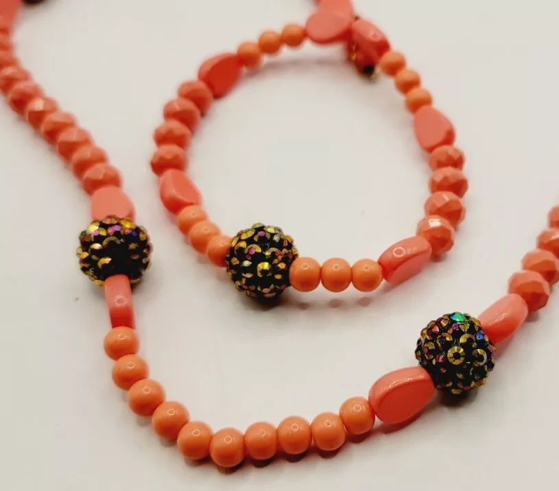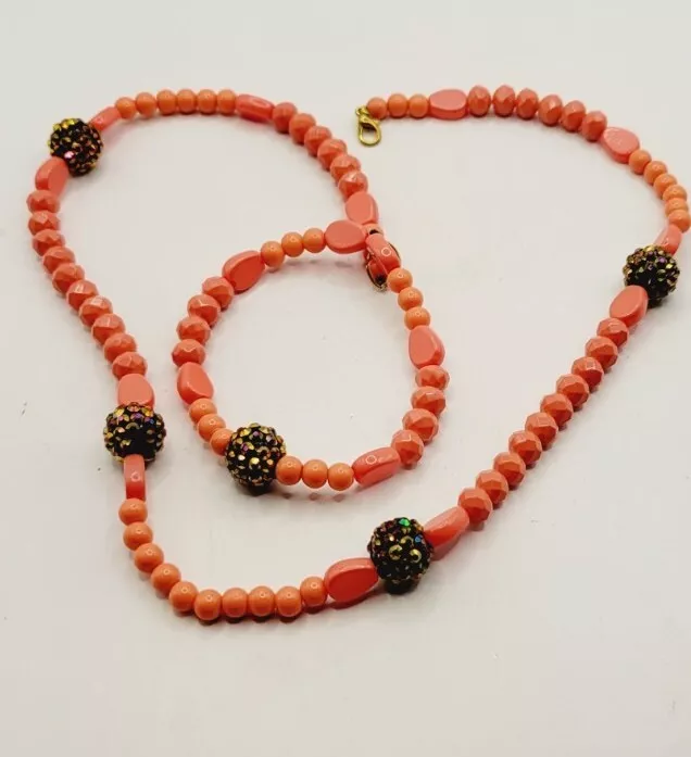 HomeCoral Beaded Necklace & Stretch Bracelet Set Art Deco