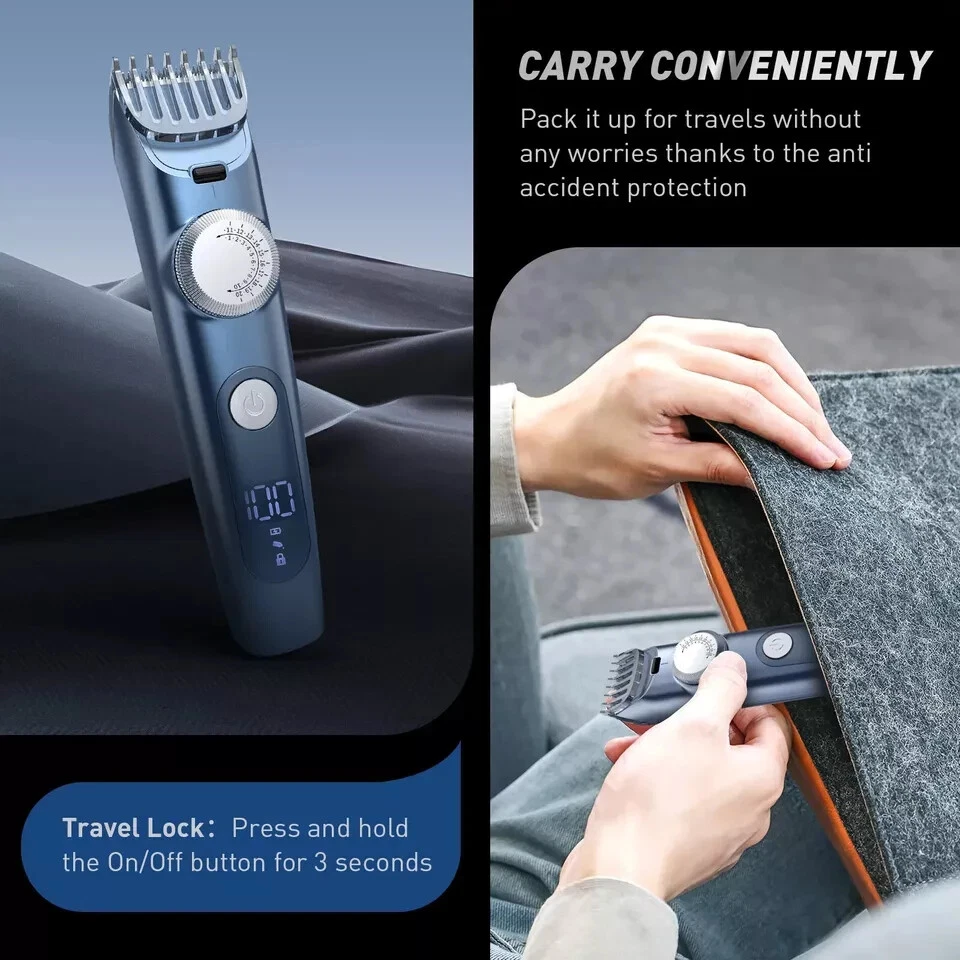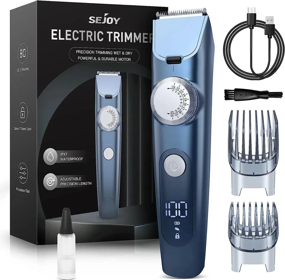 Cordless Beard Trimmer for Men Adjustable Hair Mustache Trimmer with LED Display Description: About this item 【High Quality】 Sejoy hair clipper uses a powerful motor and high quality carbon steel blades to cut easily and quickly without pulling hair. The tip section features a safe R-shaped blunt design that is skin-friendly. Professional zero gapped hair clippers for any man's hairstyling needs, this trimmer can be used at home or as a barber's hair cutting kit. 【0.5mm-20mm Length Adjustment】 This hair trimmer for men comes with two different length guide combs (0.5-10mm / 10.5-20mm), a free length adjustment dial and up to 40 precise length settings, so you can use it according to your desired hair length. The noise level during operation is less than 60 dB, so you won't be bothered by noise. 【TYPE-C Quick Charge】 Professional hair clipper is powered by a powerful lithium-ion battery that runs for at least 120 minutes after a full charge of approximately 90 minutes. Type-C charging port for connecting a USB adapter or other USB powered device. The cordless hair clipper's LED display clearly shows the percentage of battery remaining. 【Easy to use and clean】 The beard trimmer's blades can be easily removed and rinsed under the tap. It is recommended to clean any hair left on the blades with the included brush after each shave and haircut. Cordless and compact, lightweight and portable, the men's and women's hair trimmers are well made and durable for use at home or when travelling. 【Best Gift】 Designed to give you professional quality results in the comfort of your own home, this rechargeable hair clipper is not only for men and children, but also for pets and women. Great as a holiday gift, anniversary gift for someone you love!