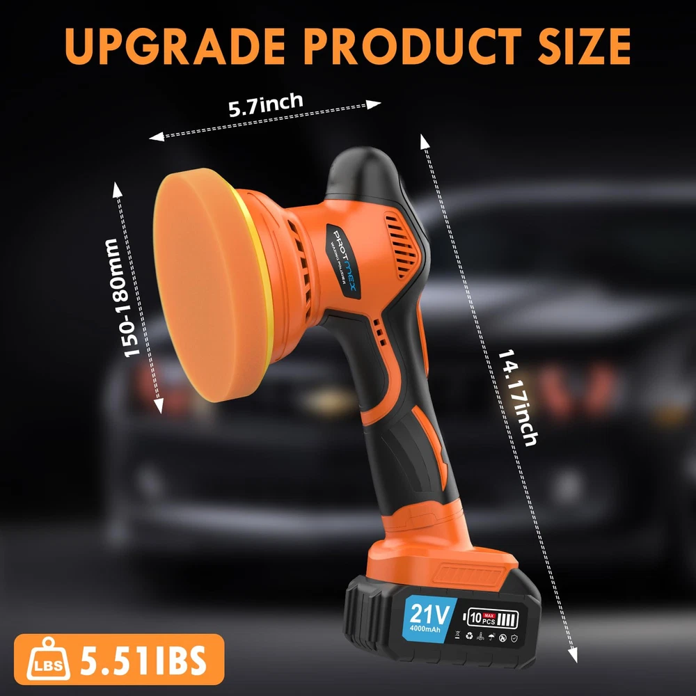 ใ๐ฎ๐ ๐ฎ๐ญ๐ฉ ๐ฐ๐ฌ๐ฌ๐ฌ๐บ๐๐ต ๐๐ฎ๐๐๐ฒ๐ฟ๐ถ๐ฒ๐ & ๐๐ฎ๐๐ ๐๐ต๐ฎ๐ฟ๐ด๐ฒ๐ฟ -- ๐๐ฟ๐ถ๐ฒ๐ป๐ฑ๐น๐ ๐จ๐๐ฒ๐ฟ ๐๐ ๐ฝ๐ฒ๐ฟ๐ถ๐ฒ๐ป๐ฐ๐ฒใCar Buffer Polisher is equipped with 2 * 4000mAh battery packs, (21V battery contains 10 PCS), the battery life is over 70.5%, which can keep the car polisher working for about 90 to 120 min, which is more efficient than the 2.0Ah battery pack with only 5 batteries. Equipped with a charger, you can work efficiently and easily!!! ใ๐จ๐ฝ๐ด๐ฟ๐ฎ๐ฑ๐ฒ๐ฑ ๐ง๐ผ๐๐ฐ๐ต ๐ฆ๐ฐ๐ฟ๐ฒ๐ฒ๐ป ๐๐ถ๐๐ฝ๐น๐ฎ๐ -- ๐๐ฎ๐๐ ๐๐ผ ๐จ๐๐ฒใThe car polishers and buffers are equipped with a touch screen display. Compared with the traditional buffer polisher button, it is easy to use and flexible to adjust. LED digital display can view the gear status. Meanwhile, gear plus and minus modes can be switched freely. It is easy to control, saving time and effort, allowing you to work easily!!! ใ๐ฃ๐ผ๐๐ฒ๐ฟ๐ณ๐๐น ๐ด-๐ฆ๐ฝ๐ฒ๐ฒ๐ฑ ๐ฆ๐ฒ๐๐๐ถ๐ป๐ด๐ & ๐๐ถ๐ด๐ต๐๐๐ฒ๐ถ๐ด๐ต๐ ๐๐ผ๐ฟ๐ฑ๐น๐ฒ๐๐ ๐๐ฒ๐๐ถ๐ด๐ป -- ๐ ๐ฒ๐ฒ๐ ๐ฌ๐ผ๐๐ฟ ๐ฉ๐ฎ๐ฟ๐ถ๐ผ๐๐ ๐ช๐ผ๐ฟ๐ธ ๐ก๐ฒ๐ฒ๐ฑ๐ใThe portable car buffer polisher has 8-level speed control (2800 to 6000 RPM, 1-3 Low; 4-6 Medium; 7-8 High), whether you are waxing and polishing at low speed, polishing and cleaning at medium speed, or tackling stubborn defects and oxidation at high speed, the cordless orbital polisher can meet your needs as well as adopt wireless design, freeing you from the constraints of wires, providing greater working freedom!!! ใ๐จ๐ฝ๐ด๐ฟ๐ฎ๐ฑ๐ฒ ๐ง๐ต๐ฒ ๐๐ป๐ฐ๐น๐ถ๐ป๐ฎ๐๐ถ๐ผ๐ป ๐ข๐ณ ๐ง๐ต๐ฒ ๐๐ฟ๐ถ๐ฝ & ๐ฅ๐ฒ๐ฑ๐๐ฐ๐ฒ ๐ฉ๐ถ๐ฏ๐ฟ๐ฎ๐๐ถ๐ผ๐ป ๐๐ป๐๐ฒ๐ป๐๐ถ๐๐ -- ๐ฃ๐ฟ๐ฒ๐๐ฒ๐ป๐ ๐๐ผ๐น๐น๐ถ๐๐ถ๐ผ๐ป ๐๐ป๐ฑ ๐จ๐๐ฒ ๐ช๐ถ๐๐ต ๐ง๐ต๐ฒ ๐๐ผ๐ฟ๐ถ๐๐ผ๐ป๐๐ฎ๐น ๐ฆ๐๐ฟ๐ณ๐ฎ๐ฐ๐ฒใThe polisher for car detailing inclination of the grip, Compared with traditional polishers, the horizontal distance has increased by about 2cm, making it smoother and more efficient to use. Reduce vibration, non-slip, comfortable grip, and can maintain a comfortable working state of the hand for a long time, providing you with convenience in any situation. ใ๐จ๐ฝ๐ด๐ฟ๐ฎ๐ฑ๐ฒ๐ฑ ๐๐ฐ๐ฐ๐ฒ๐ป๐๐ฟ๐ถ๐ฐ ๐ฃ๐ผ๐น๐ถ๐๐ต๐ฒ๐ฟ -- ๐๐ผ๐๐ฒ๐ฟ ๐๐ฎ๐ฟ๐ด๐ฒ๐ฟ ๐ฃ๐ผ๐น๐ถ๐๐ต๐ถ๐ป๐ด ๐๐ฟ๐ฒ๐ฎ & ๐ฃ๐ฟ๐ผ๐๐ฒ๐ฐ๐ ๐๐ฎ๐ฟ ๐ฃ๐ฎ๐ถ๐ป๐ใThe 6-inch car buffer polisher adopts an upgraded 9 mm double-acting orbital eccentric shaft design, premium pure copper motor, strong power, high polishing efficiency, low noise, and can effortlessly cover a wider polishing area and complete your work needs in a short time. Whether you are a professional technician, a beginner, or a car enthusiast, can improve your efficiency and bring an excellent appearance to your vehicle. ใ๐ข๐๐ - ๐ข๐ -๐ง๐ต๐ฒ - ๐๐ผ๐ !ใcar polishing kit comes with 1*eccentric polisher, 3*sponge polishing pads, 3*wave sponge polishing pads, 2*wool polishing discs, 2*cloth covers, 2*non-woven covers, 4*sandpaper. car buffers are very suitable for furniture, ceramics, wood, and metal. buffer polisher is also an ideal choice for car polishing, waxing, and buffering, and it is friendly to both professionals and beginners.