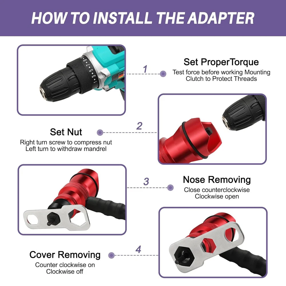 Store Categories Store Categories ✔️Auto Parts & Tools ✔️Ignition Wires ✔️Roof Racks & Cross Bars ✔️DVD Player & Home Projector Other Cordless Drill Electric Rivet Gun Adapter Rivet Nut Drill Adapter Kit w/ Case Description Features: ⚡[Powerful rivet adapter kit] The rivet adapter can be used with standard wireless drills and screwdrivers to transform into powerful nut rivet pliers (through a 1/4 "hexagon socket). For aluminum and steel rivet nuts, use wireless drills of 18V - 24V (All drills must be equipped with a torque limiter clutch). ⚡[10 Interchangeable Mandrels ] Size M3 M4 M5 M6 M8 SAE 6-32 8-32 10-32 10-24 1/4-20, with 10 Rivet Nuts to meet your various riveting operations. ⚡[Comfortable and Sustainable] The Electric Drill Adapter kit comes with a sturdy carry case for easy protection and storage of electrical drills, nuts, and rivets, and is very easy to transport. The high-quality aluminum-covered handles are non-slip and provide comfort. ⚡[Easy to Transport and Versatile] The Electric Drill Cover Adapter kit comes with a sturdy carry case for easy protection and storage of electrical drills, nuts, and rivets, making it easy to carry. They are suitable for installation and maintenance in buildings, cars, elevators, instruments, and furniture. DIY and hand are a good choice. ⚡[Product Includes] 1 Rivet Nut Kit Adapter (drill not included), 10 Interchangeable Mandrels (Size: M3 M4 M5 M6 M8 SAE 6-32 8-32 10-32 10-24 1/4-20), 10 Rivet Nuts, 1 Wrench, 1 Instruction Manual, and 1 Durable Storage Case.Note: M6 is already installed in the adapter. Specifications: Brand GATTLELIC Type Drill Adapter Kit Item Weight 3.12 pounds Item Dimensions 9.48 x 2.55 x 6.29 inches Material Aluminum, Alloy Steel Handle Material Aluminum Modification Description Does not apply Color Red 10 Interchangeable Mandrels Size M3 M4 M5 M6 M8 SAE 6-32 8-32 10-32 10-24 1/4-20 Features High Quality & Durable, User-Friendly Design, 10 Interchangeable Heads Size, Rugged Carrying Case Payment Shipping Returns Warranty Feedback Contact Us Payment 1. We accept payment from eBay Checkout System, you could pay with Paypal, Visa, Mastercard, American Express and Discover. 2. An invoice will be sent to the primary email address listed on your ebay profile within 24 hours of purchase or end of auction. Shipping 1. Handing time 1-3 BUSINESS DAY after payment has been received. 2. Click the "Shipping and Payments" tab to see shipping costs and estimated delivery dates. 3. Sales tax will be charged automatically by eBay side. 4. Tracking number will be updated within 12 hours after order is dispatched. 5. We don't ship to Post office Boxes, U.S. Territories or internatinal address. Returns The following terms will apply if you want to return items that you don't satisfy with. 1. All items must be applied within 30 days from the date of receive the package for a refund, we accept returns only in 100% NEW, UNUSED & UNINSTALLED condition; 2. The buyer is responsible for the cost of return shipping; 3. Please contact us for the return Authrization and return address, do not return items without contact us or your item may be refused and returned to you at your expense. Warranty 1. All items are coverd by 1-YEAR limited parts warranty. 2. If deffective, damaged or malfunctioning, contact us right away, so we can help solve the problem. We will exchange any defective merchandise for the same item, within 30 days we provide a label for paid return shipping. 3. After 30 days the buyer is responsible for all shipping costs associated with a warranty exchange. 4. Modifing an item in any way will void the warranty. Feedback We greatly appreciate your positive feedback. Please do Not leave negative feedback without asking for help. Our aim is to provide TOP-LEVEL customer service, so we will always try our best to solve any question or problem you have. Contact Us We strive for our customer satisfacion at best possible. If you have any question, please feel free to email us in anytime, we will reply you ASAP. If no response within 24 hours,Please check the spam in your mail box. Business Hours: Monday - Friday: 9:00 a.m. - 5:00 p.m. PST Saturday - Sunday: Closed. Holidays: Closed. Email: To send us a message click the "Ask a Question" link in Seller Info above Note: Please notice that no email will be replied during weekend and holidays. On Nov 14, 2024 at 02:07:20 PST, seller added the following information: