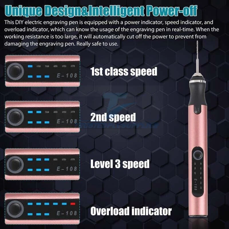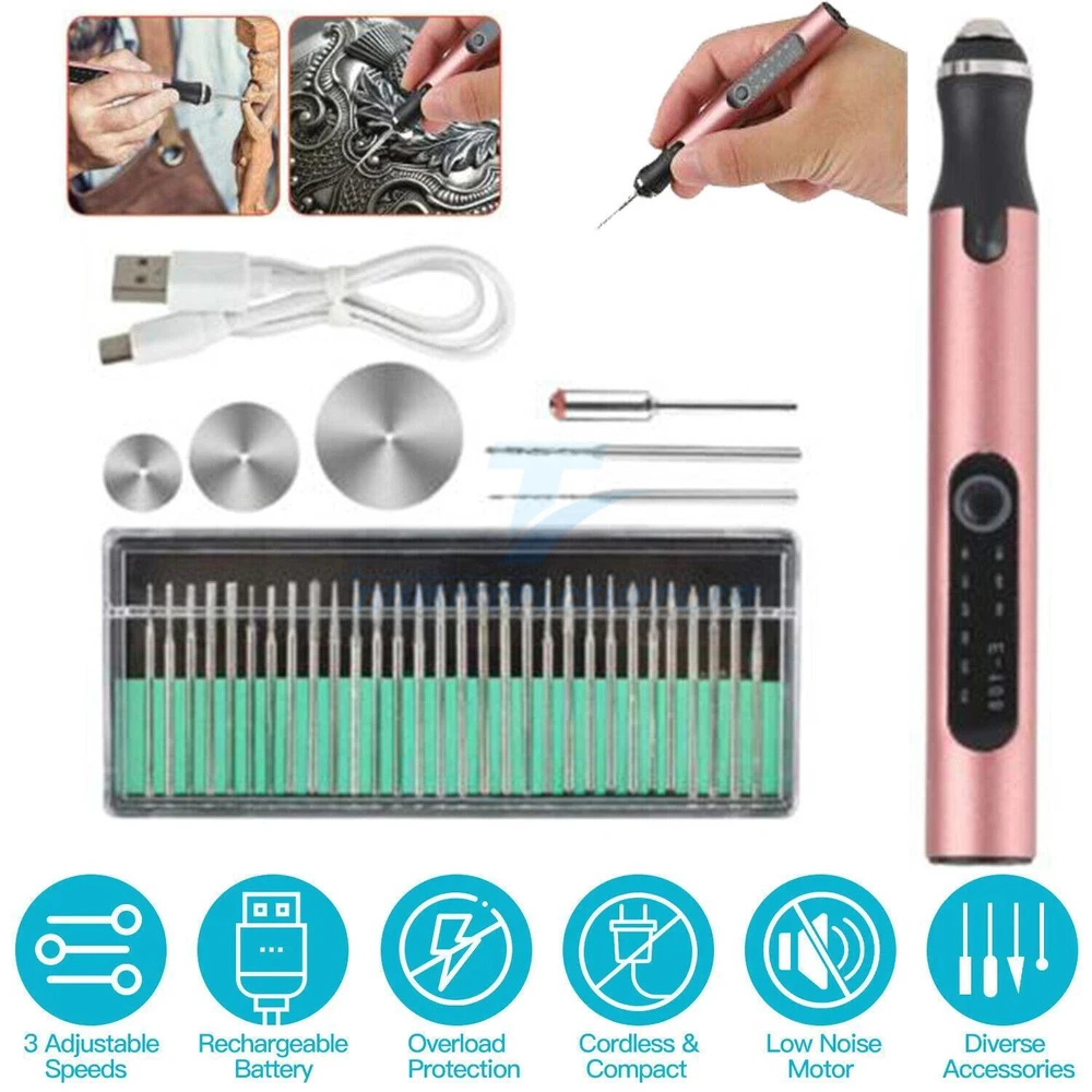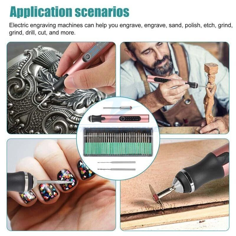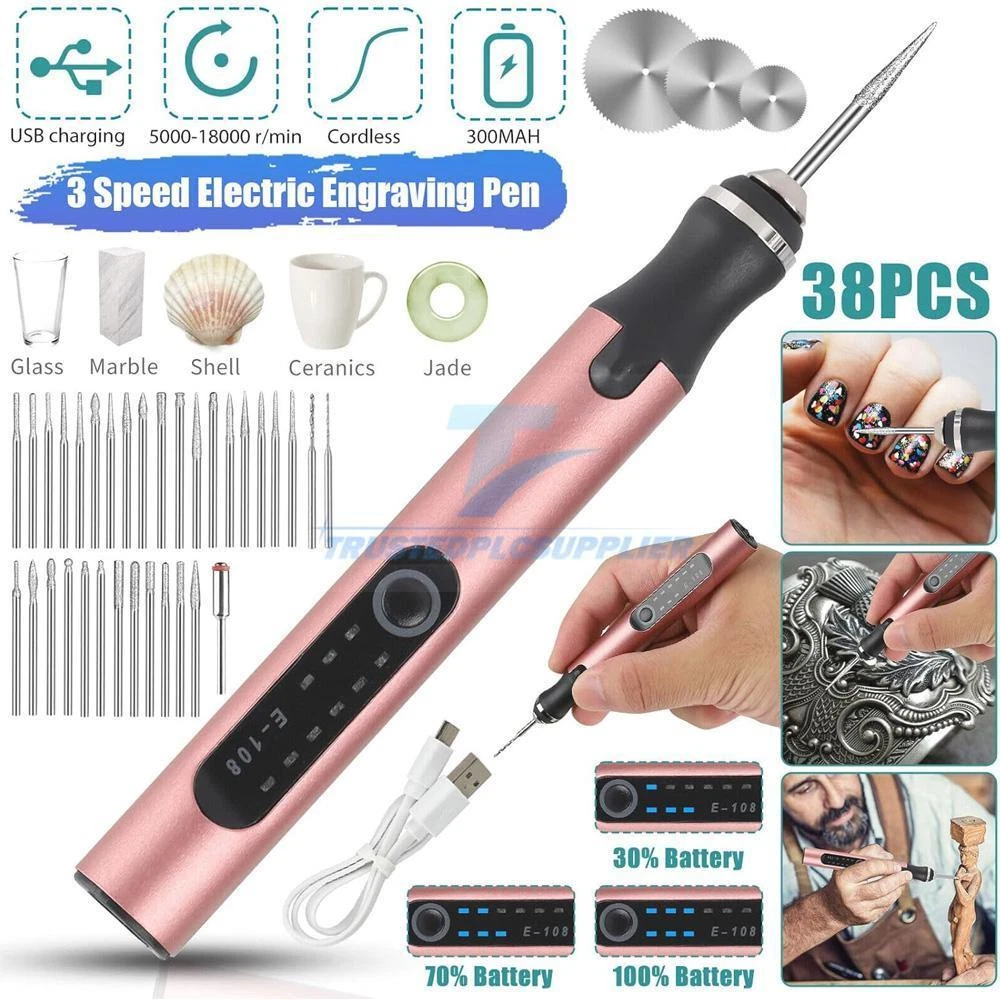 Product Description Cordless Electric Engraving Pen Rotary Tool Kit Variable Speed W/ 37 Accessories Feature: USB Charging Wireless Engraver: This engraving tool is equipped with a Lithium battery and rechargeable by a USB interface. Cordless use will take up to 30 minutes of idling after a full charge. Easy to help you finish a better-engraved craft. Adjustable Speed: 3 levels of speed can be adjustable from 5000-18000 r/min for different situations. The lowest speed will let you polish your nail in a safe, the highest speed is also working on metal carving. Various Grinding Bits: These metal engraving machine kits include 30pcs rotary bits,2 drill bits, 1 shank post, and 3 saw blades, all these bits are enough to work on engraving, carving, sanding, polishing, etching, routing, grinding, drilling, cutting. Unique Design&Intelligent Power-off: This DIY electric engraving pen is equipped with a power indicator, speed indicator, and overload indicator, which can know the usage of the engraving pen in real-time. When the working resistance is too large, it will automatically cut off the power to prevent it from damaging the engraving pen. Safe to use. Wide Applications: The electric engraver supports you to engrave, engrave, sand, polish, etch, mill, grind, drill, cut, and more on metal, glass, ceramic, leather, wood, stone, or statue work. Specification: Type: Electric Engraving Tool Quantity:38Pcs Color: Pink Power Source: USB charging Power:10W Voltage:4.2V Battery Type: Lithium battery Speed:5000-18000r / min Clamping Diameter:2.35mm Tool Length:120 mm/4.73 inch Battery capacity:300MAH Suitable for: all 2.35MM specification grinding heads, reducing drill, etc Fit for metal, glass, ceramic, leather, wood, stone, or statue work Application: engraving, carving, sanding, polishing, etching, routing, grinding, drilling, cutting Included: 1 x Electric engraving pen 1 x USB Charging Cable 30 x Rotary bits 2 x Drill bits 3 x Stainless Steel Cutting Discs 1 x shank post 1 x User manual About Us Payment Shipping Returns Contact Us 1. Unless specified otherwise, all our products are IN STOCK and are shipped from USA Local warehouse - Not Overseas! 2. We provide a 30 day Satisfaction Guarantee or your money back (provided items are in the same new and resaleable condition.) 3. We have a PayPal Verified Business Account, please buy with Confidence! 4. Every item will be tesrted before send.We know our products well and if we don't have the answers we will do our best to find them for you! 5. Our friendly team look forward to serving you! Your satisfaction is our No.1 Priority We will do our best to satisfacy you. 1.Paypal, Credit Card, G Pay etc, many payment way is accepted. 2.Please be sure your shipping address is correct before make a payment. 1.We will ship out the item within 1-3 business days after comfirming the payment, appreciate your patience. 2.If the items are broken on the way(we will check the orders clearly before we sent them),please contact us in 3 days you received it. We will send you a new one or refund your payment. 1.We stand behind every buyer.Items can be returned for exchange or refund within 30 days. 2.Please contact us when you have any confusion of our item, we will solve the trouble for you as soon as possible. 1.This is professional Seller.We will reply your message within 24 hours. 2.Please contact us whenever you have any question about the item. We will deal with it as soon as possible. 3. If you are unhappy with the item or our service,please Contact Us before leave feedback,just give me a chance,thank you! About Us 1. Unless specified otherwise, all our products are IN STOCK and are shipped from USA Local warehouse - Not Overseas! 2. We provide a 30 day Satisfaction Guarantee or your money back (provided items are in the same new and resaleable condition.) 3. We have a PayPal Verified Business Account, please buy with Confidence! 4. Every item will be tesrted before send.We know our products well and if we don't have the answers we will do our best to find them for you! 5. Our friendly team look forward to serving you! Your satisfaction is our No.1 Priority We will do our best to satisfacy you. Payment 1.Paypal, Credit Card, G Pay etc, many payment way is accepted. 2.Please be sure your shipping address is correct before make a payment. Shipping 1.We will ship out the item within 1-3 business days after comfirming the payment, appreciate your patience. 2.If the items are broken on the way(we will check the orders clearly before we sent them),please contact us in 3 days you received it. We will send you a new one or refund your payment. Returns 1.We stand behind every buyer.Items can be returned for exchange or refund within 30 days. 2.Please contact us when you have any confusion of our item, we will solve the trouble for you as soon as possible. Contact Us 1.This is professional Seller.We will reply your message within 24 hours. 2.Please contact us whenever you have any question about the item. We will deal with it as soon as possible. 3. If you are unhappy with the item or our service,please Contact Us before leave feedback,just give me a chance,thank you! You may also like 4 Gauge Car Audio Cable Kit Amplifier Install Amp RCA Subwoofer Sub Wiring 2300W 18.89 USD 0.99 USD 42 Tips 96W Universal Power Supply Charger for Laptop Notebook AC/DC Power 14.99 USD 15.99 USD 0.99 USD 6% off Oven Stove Igniter for Samsung DG94-00520A Fast Shipping 16.99 USD Free shipping 9PC ABS Socket Organizer 1/2 3/8 1/4 inch Drive Socket Rail Holders Wall Mount 18.49 USD Free shipping Car Steering Wheel Tray Desk Two Sided For Laptop Drink Food Work Table Holder 9.99 USD 0.49 USD Commercial LED Outdoor Dusk to Dawn Solar Street Light Road Area Lamp USA 21.99 USD 24.99 USD Free shipping 12% off powered by