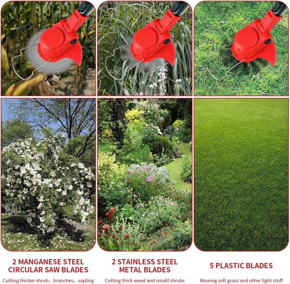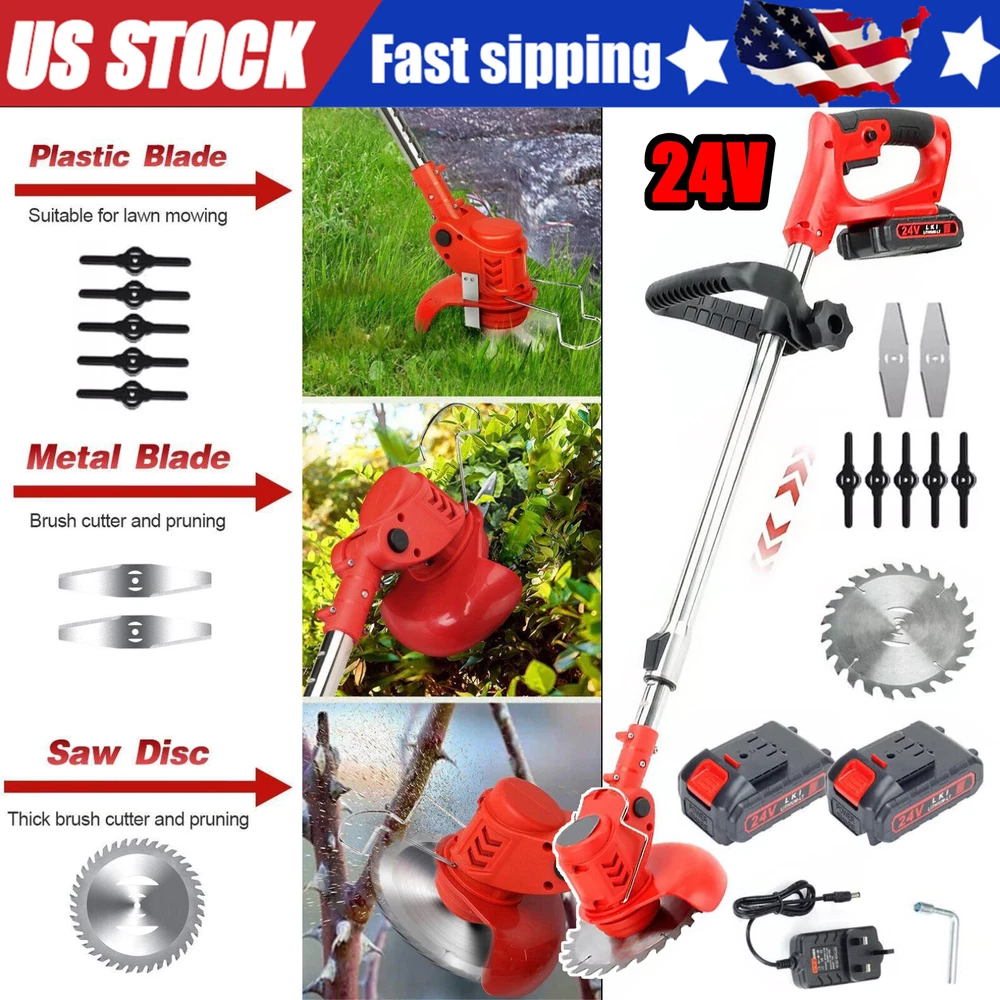 Descriptions: 【POWERFUL ELECTRIC WEED EATER CORDLESS】 【3-IN-1 ELECTRIC GRASS CUTTER】 【ADJUSTABLE DESIGN& 90°HEAD DESIGN】 Specification: Motor: 800W No load speed: 8500 RPM Battery: 21V 2000 mAh Lithium Battery * 2 Charging time: around 2-3 hours/ per battery No loading time:120-150mins Working cutting time: 30 to 60 minutes Package List: 1 * cordless grass trimmer 2 * stainless steel blades 1 * 6 inch alloy saw blade 5 * plastic blades 2 * Batteries 1 * battery charger 1 * small rotating wrenches 1 * manual Electric Lawn Edger Cordless Weed Grass Trimmer Cutter Eater w/ 2 Battery USA D escriptions: 【 POWERFUL ELECTRIC WEED EATER CORDLESS】 The stringless electric weed eater battery powered , featured with grass trimming & bush trimmer & lawn edger function. easy for different cutting jobs, not limited by wires, you can mow anywhere. Includes 2pcs 2000mAh and 800W high-power pure copper motor, 8500 RPM engine speed.Detachable wheels for more functionality when gardening! improve work efficiency. 【 3-IN-1 ELECTRIC GRASS CUTTER】 The electric weed trimmer with 3 types of blades: plastic blades for mowing delicate grass, Stainless steel metal blades are well for weeds small shrubs pruning; 40 tooth alloy saw blades are great for cutting thicker shrub, branches, sapling. Ideal for trimming around yards and bushes, lots, flower beds, walkways, patios.(To avoid damage to the blade, please choose the correct blade when weeding) 【 ADJUSTABLE DESIGN& 90°HEAD DESIGN】 The wcordless weed wackeris equipped with an adjustable rod, which can be adjusted freely from 35 to 50 inches.90 degrees adjustable grass trimmer can rotate into different positions, which helps you slope sections of the lawn and get into hard-to-reach corners with ease,Get going right away on yard work, lawn care, and other around the house projects. Specification : Motor: 1000W No load speed: 18000 RPM Battery: 21V 2000 mAh Lithium Battery * 2 Charging time: around 2-3 hours/ per battery No loading time:120-150mins Working cutting time: 30 to 60 minutes Package List: 1 * cordless grass trimmer 2 * stainless steel blades 1 * 6 inch alloy saw blade 5 * plastic blades 2 * Batteries 1 * battery charger 1 * small rotating wrenches 1 * manual Payment Shipping Return Contact us About us Payment 1.Paypal, Credit Card, G Pay etc, many payment way is accepted. 2.Please be sure your shipping address is correct before make a payment. Shipping 1.We are shipping from multiple warehouses (Houston, Texas/ Corona, California) , please note before placing an order 2.We will ship out the item within 1-3 business days after comfirming the payment, appreciate your patience. 3.If the items are broken on the way( we will check the orders clearly before we sent them ),please contact us in 3 days you received it. We will send you a new one or refund your payment. Return 1.We stand behind every buyer.Items can be returned for exchange or refund within 30 days. 2.Please contact us when you have any confusion of our item, we will solve the trouble for you as soon as possible. Contact us 1.This is professional Seller.We will reply your message within 24 hours. 2.Please contact us whenever you have any question about the item. We will deal with it as soon as possible. 3. If you are unhappy with the item or our service,please Contact Us before leave feedback,just give me a chance,thank you! About us 1. Unless specified otherwise, all our products are IN STOCK and are shipped from Local warehouse - Not Overseas! 2. We provide a 30 day Satisfaction Guarantee or your money back (provided items are in the same new and resaleable condition.) 3. We have a PayPal Verified Business Account, please buy with Confidence! 4. Every item will be tesrted before send.We know our products well and if we don't have the answers we will do our best to find them for you! 5. Our friendly team look forward to serving you! Your satisfaction is our No.1 Priority We will do our best to satisfacy you.