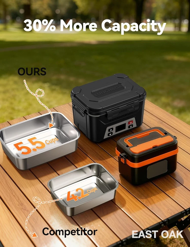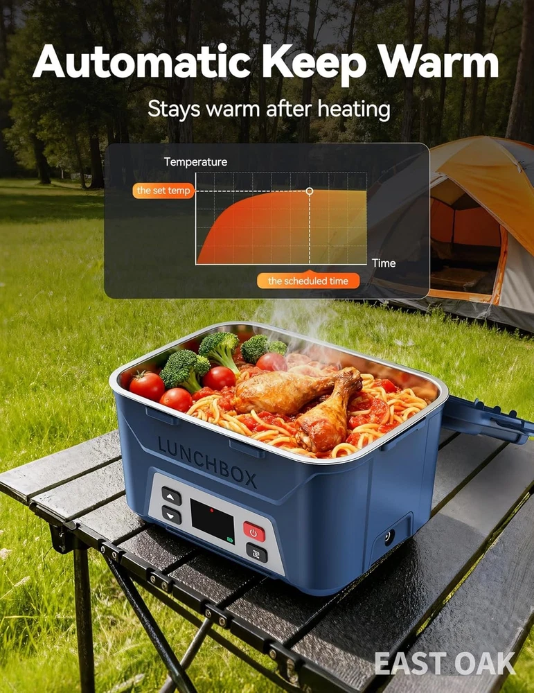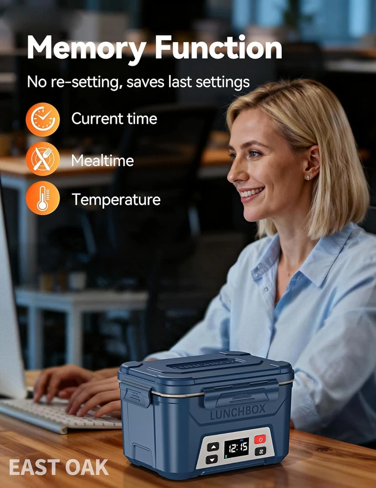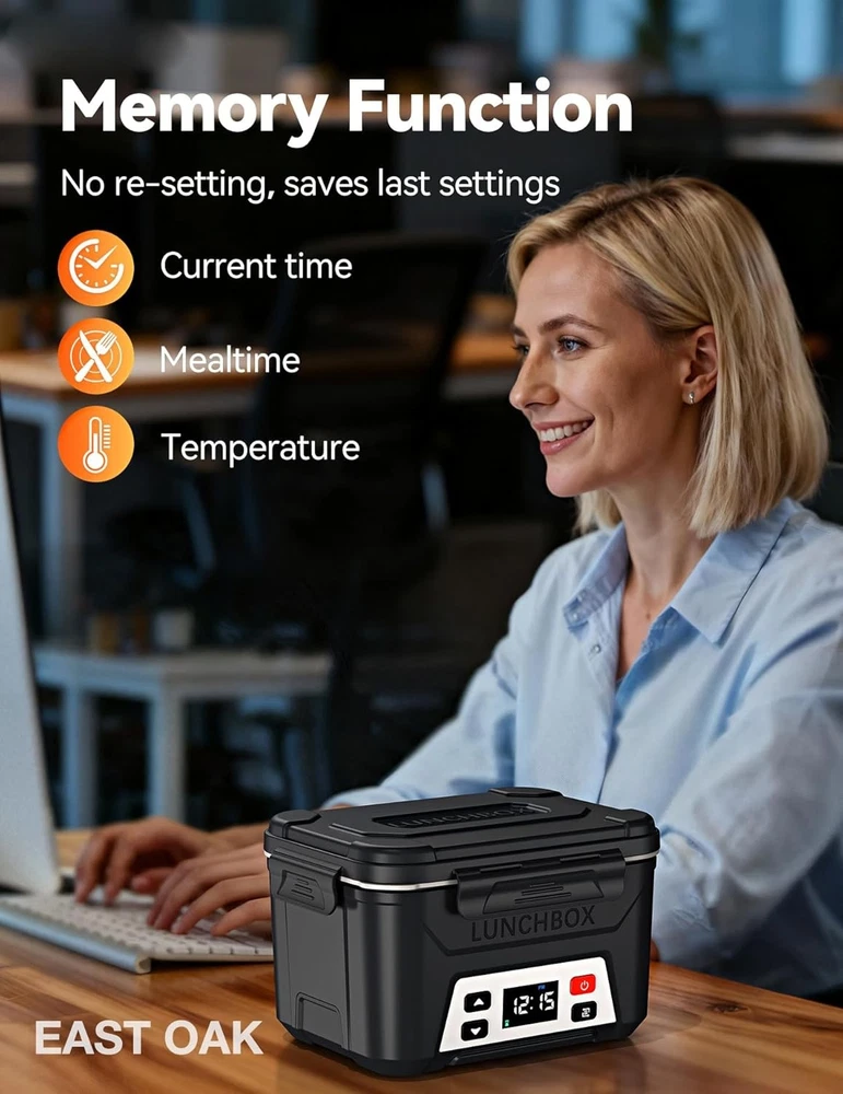 From the manufacturer Previous page Next page 1 Cordless design 2 Battery Display Previous page Next page 1 More convenient 2 Setting steps 3 Auto pre-heating 4 Enjoy lunch Previous page Next page Previous page Next page Previous page Next page Check Battery Level 1. Short press the power button. 2. Short press the function selection button five times. To avoid interruption due to low battery, please check the battery level (ensuring it is at least 90%) and charge the device the night before use. The video showcases the product in use. The video guides you through product setup. The video compares multiple products. The video shows the product being unpacked. check battery levwl Merchant Video Meal Time Setting 1.Short press the power button. 2.Short press the function selection button, then long press it. (Note: When the small countdown timer icon below is flashing, it indicates that you have entered the meal time setting mode.) 3.Use the up or down adjustment buttons: short press for ±1 minute, long press for ±10 minutes. 4.Short press the function selection button again. The video showcases the product in use. The video guides you through product setup. The video compares multiple products. The video shows the product being unpacked. set current time Merchant Video Meal Time Setting 1.Short press the power button. 2.Short press the function selection button, then long press it. (Note: When the small countdown timer icon below is flashing, it indicates that you have entered the meal time setting mode.) 3.Use the up or down adjustment buttons: short press for ±1 minute, long press for ±10 minutes. 4.Short press the function selection button again. The video showcases the product in use. The video guides you through product setup. The video compares multiple products. The video shows the product being unpacked. set meal time Merchant Video Temperature Setting 1.Short press the power button. 2.Short press the function selection button twice, then long press it. (Note: When the small temperature icon below is flashing, it indicates that you have entered the temperature setting mode.) 3.Use the up or down adjustment buttons: short press for ±1℉, long press for ±10℉. 4.Short press the function selection button again. The video showcases the product in use. The video guides you through product setup. The video compares multiple products. The video shows the product being unpacked. set the temp Merchant Video Immediate Heating Mode 1.Short press the power button. 2.Short press the function selection button four times, then long press it. Heating completes in 2 hours, then automatically switches to keep warm with green indicator. To exit the immediate heating mode, turn off the device and turn it back on. The video showcases the product in use. The video guides you through product setup. The video compares multiple products. The video shows the product being unpacked. Immediate Heating Mode Merchant Video Important Usage Notes 1. Memory Function Application: The memory function is optimized for users with fixed daily routines. It works best when the lunch box is activated at the same time each day for a consistent meal schedule. Inconsistent daily timing may affect its punctuality. 2. Heating Temperature Specification: The lunch box offers an adjustable heating range of 170°F to 220°F. Please note that this temperature refers to the heating plate itself, not the final temperature of the food contents. 3. Heating Time Planning: A full heating cycle requires approximately 2 hours. To ensure your meal is thoroughly warmed, please plan ahead and start the heating process at least 2 hours before your intended meal time. 4. Battery Level Pre-check: Before each use, please verify the battery level. For a complete 2-hour heating cycle, it is recommended to ensure the battery is charged to at least 90% to prevent interruption. 5. Material Safety Notice: The inner pot is constructed from food-grade 304 stainless steel, which contains nickel. Individuals with a known nickel allergy are advised against using this product. 6. Optimal Heating Tip: As heating originates from the bottom, ensure full contact between the food and the container base for efficient heat transfer. For more even heating, consider adding a small amount of water to drier foods. 7. Compatibility Advisory: To ensure optimal performance and safety, please use the provided original charger and inner pot. The use of non-original components may lead to compatibility issues or suboptimal performance. On Jan 8, 2026 at 19:14:09 PST, seller added the following information: On Jan 14, 2026 at 23:57:33 PST, seller added the following information: