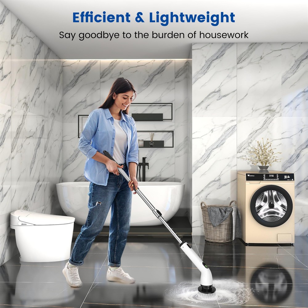 1. This electric spin scrubber is a game-changer for cleaning! The adjustable speeds and powerful motor make scrubbing effortless, while the long battery life ensures no interruptions. The extendable handle and multiple brush heads reach every corner, and the waterproof design is perfect for showers. No more sore arms—just quick, sparkling results! Highly recommend for an easier, deeper clean.