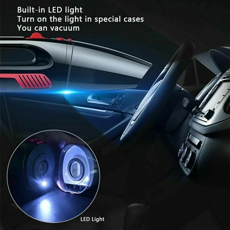 Car Vacuum Cleaner Wireless Hand-Held Vacuum Cleaner Work Wet and Dry Feature: 1.One-key control, easy and convenient to use. 2.One button to open the dust tank, convenient to pou r out the dust and clean the dust tank. 3.Removable and washable HEPA filter makes the vacuum cleaner with maximum suction power and continuous cleaning efficiency. 4.This vacuum cleaner can work wet and dry, cleaning spills, dust and dirt and making your car as clean as new. 5.Shark-gill type heat emission hole can efficiently reduce its working noise. 6.Hand-held design with rear charging port makes this cleaner easy to operate. 7.It can work for 30min after charged for 2 hours. 8.It is suitable for a variety of surfaces including carpets, interior decoration, tiles, furniture, mattresses, bedding, corners, skirting boards and automotive int eriors. Specification: Item Type: Car Vacuum Cleaner Voltage: DC 12V Rated Power: 120W Current: 8A Suction Power: 5kPa Size: 30x5.5x8.5cm LED lighting Battery:2200mAh Package Included: 1 x Car Vacuum Cleaner 1 x Brush Suction Nozzle 1 x EVA Hosepipe 1 x Long Flat Suction Nozzle 1 x Long Suction Nozzle 1 x Short Suction Nozzle 1 x USB Cable