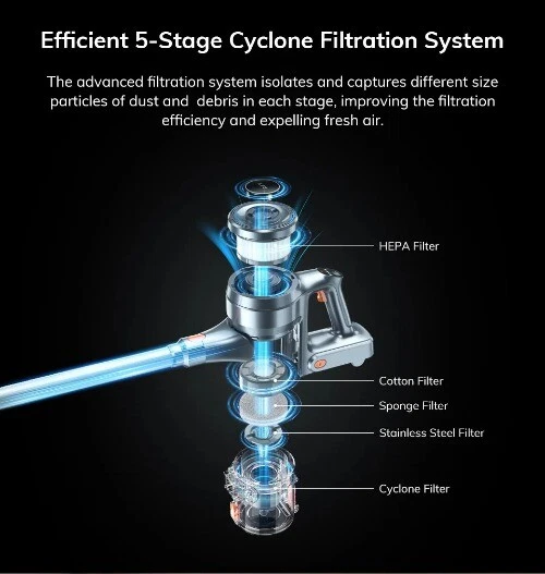 Cordless Handheld Vacuum Cleaner 21kPa Suction 1.2L Dust Cup LED Illuminate Home
