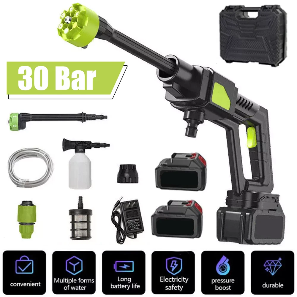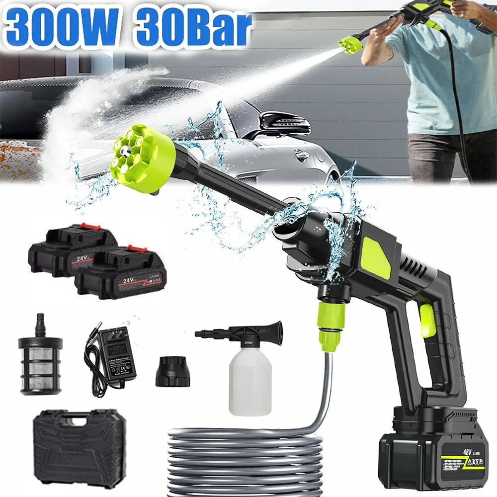 Features : 【Upgraded brushless motor】 【Multiple Spray Patterns】 【POWERFUL BATTERY】 【Draw Water from Anywhere】 【Versatile Use】 Specification : Motor: Brushless Motor Material: ABS and copper Power Supply:Lithium battery Battery capacity: 12000mAh(Note: A single battery is 1200mah, a total of 10 batteries are connected in series and parallel) Power:300W Rated voltage:21V maximum voltage:48V Product pressure: 30Bar Drive: Lithium battery wireless drive Spray type of water gun: 6-IN-1 Multi-Function & Rotatable Spray Nozzles Jet stroke: 6-12 meters Water pipe length: 5 meters Car washing equipent type: household car washing machine Water source type: Bucket / Faucet Self-priming Scope of application: car washing, watering flowers, water vegetables, spraying, garden cleaning, etc. Cordless High Pressure Car Washer Portable Water Wash Cleaner Gun Jet 2xBattery Features : 【Upgraded brushless motor】: Most cordless pressure washers use brushed motors for it ,we use brushless motors .brushless motor is upgrade motor ,it has higher efficiency and controllability, longer working life ,save electric power , brushless motors lack brushes and physical commutators, they require less overall maintenance .and its cost is also much higher than brushed motor. 【Multiple Spray Patterns】:The battery powered pressure washer is equipped with adjustable nozzles from 6in1 nozzles and foam sprayers. You can turn the nozzle freely according to your cleaning needs. Easily removes all kinds of stubborn stains. Suitable for a variety of scenarios, including vehicle cleaning, exterior wall and floor cleaning, window and door cleaning, etc. Foam bottle attachment for quick foaming to easily remove stains from vehicles and windows. 【POWERFUL BATTERY】:Powered by 2 21V batteries, it is not limited by wires, very convenient to carry outdoors. One charge can provide up to 30-50 minutes of uninterrupted cleaning experience. 【Draw Water from Anywhere】: The portable pressure washer with a 16.4FT hose that makes it easy to take water from any source, so it's suitable for rivers, pools or buckets. It can also be connected to a faucet. The hose is equipped with a filter that effectively filters out particles, waste leaves or sludge, making it easy to draw water from buckets, pools, rivers or any water source. 【Versatile Use】Widely used for cleaning vehicles, bicycles and boats. The portable electric cleaner is also perfect for a variety of cleaning tasks in the home and garden. It effectively waters plants, cleans walls, floors, bathrooms, swimming pools, doors, driveways, fences and hard-to-reach corners. Specification : Product name: Wireless High Pressure Car Wash Washer Gun Motor: Brushless Motor Material: ABS and copper Power Supply:Lithium battery Battery capacity: 12000mAh(Note: A single battery is 1200mah, a total of 10 batteries are connected in series and parallel) Power:300W Rated voltage:21V maximum voltage:48V Product pressure: 30Bar Drive: Lithium battery wireless drive Spray type of water gun: 6-IN-1 Multi-Function & Rotatable Spray Nozzles Jet stroke: 6-12 meters Water pipe length: 5 meters Car washing equipent type: household car washing machine Water source type: Bucket / Faucet Self-priming Scope of application: car washing, watering flowers, watering vegetables, spraying, garden cleaning, etc. Package included: 1x Wireless car washing machine 1x Lithium battery 1x Charger 1x 5m Water pipe 1x 6-in-1 nozzle 1x Filter 1x Foam pot 2x Adapter Payment Shipping Return Contact us About us Payment 1.Paypal, Credit Card, G Pay etc, many payment way is accepted. 2.Please be sure your shipping address is correct before make a payment. Shipping 1.We will ship out the item within 1-3 business days after comfirming the payment, appreciate your patience. 2.If the items are broken on the way( we will check the orders clearly before we sent them ),please contact us in 3 days you received it. We will send you a new one or refund your payment. Return 1.We stand behind every buyer.Items can be returned for exchange or refund within 30 days. 2.Please contact us when you have any confusion of our item, we will solve the trouble for you as soon as possible. Contact us 1.This is professional Seller.We will reply your message within 24 hours. 2.Please contact us whenever you have any question about the item. We will deal with it as soon as possible. 3. If you are unhappy with the item or our service,please Contact Us before leave feedback,just give me a chance,thank you! About us 1. Unless specified otherwise, all our products are IN STOCK and are shipped from Local warehouse - Not Overseas! 2. We provide a 30 day Satisfaction Guarantee or your money back (provided items are in the same new and resaleable condition.) 3. We have a PayPal Verified Business Account, please buy with Confidence! 4. Every item will be tesrted before send.We know our products well and if we don't have the answers we will do our best to find them for you! 5. Our friendly team look forward to serving you! Your satisfaction is our No.1 Priority We will do our best to satisfacy you.