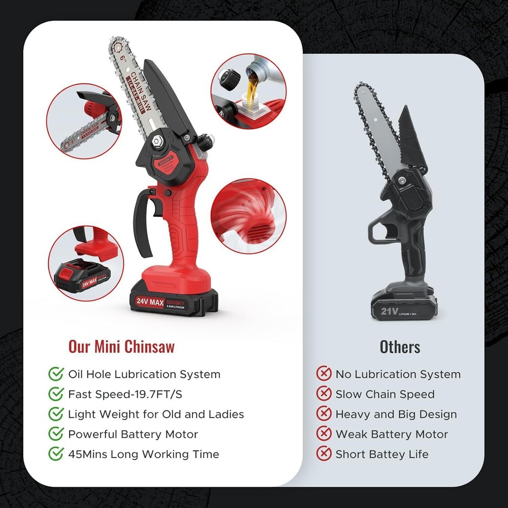 $ 33.5Mini Cordless 6-Inch Chainsaw with Auto Oiling System and Battery