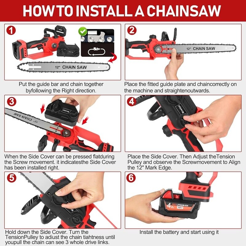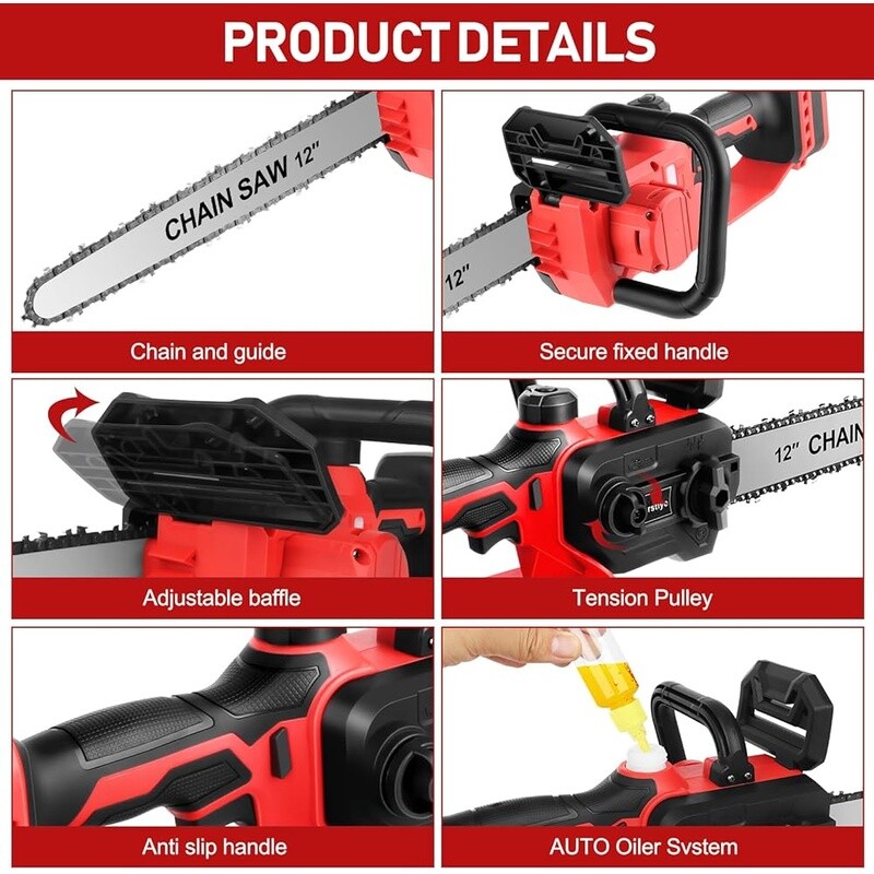 You may also like Electric Chainsaw 16" 12A Lightweight Auto-Oiling Tool-Free Chain Changes Orange 80.97 USD 112.89 USD Free shipping 28% off About this item (Note: this product does not include battery, Tool Only) this Cordless Chainsaw is perfect for M18 18V battery compatibility. 【12 inch Mini cordless chain saw】 This chain saw is engineered for people busy with gardens, farms, or DIY projects. This chain saw trims branches or vines, clears bushland, and cuts wood, bamboo, or poly pipes. This Small chainsaw enables fast and easy assembly in 5 minute, requiring no screwdriver. 【Powerful brushless motor, efficient cutting】the chain is made of 65 Mn steel with high strength, hardness, elasticity and wear resistance, while the deep quenching process further improves its performance to ensure clean and smooth cuts. An 1000W pure copper motor drives the chain at 45ft/s and delivers faster and more efficient cuts, cuts 12-inch branches in 5~10s. 【Brushless ChainSaw Application】Designed for people who have a lot to do with Household and Garden, farms or DIY projects. Chainsaw suitable for wood cutting, gardening trimming, small branch shearing and bush pruning. Widely used in gardens, farms, parks, forests, greenhouses, pastures and orchards. 【Brushless the electric chainsaw】12" Brushless Motor Handheld Electric Portable Mini Cordless Chainsaw Perfect Gift. Chainsaw is a Great Gift Choice for Husband, Dad, Mom, Friends, DIY Enthusiasts and for Any Special Occasions Such as Christmas Days, Thanksgiving Day, Valentine’s Day, Father’s Day, Anniversaries. Brand: Power Source: Battery Powered Horsepower: 1000 Watts Item Weight: 2 Pounds Product Dimensions: 22. 7"L x 5. 7"W x 7. 1"H Chain Length: 12 Inches Manufacturer: