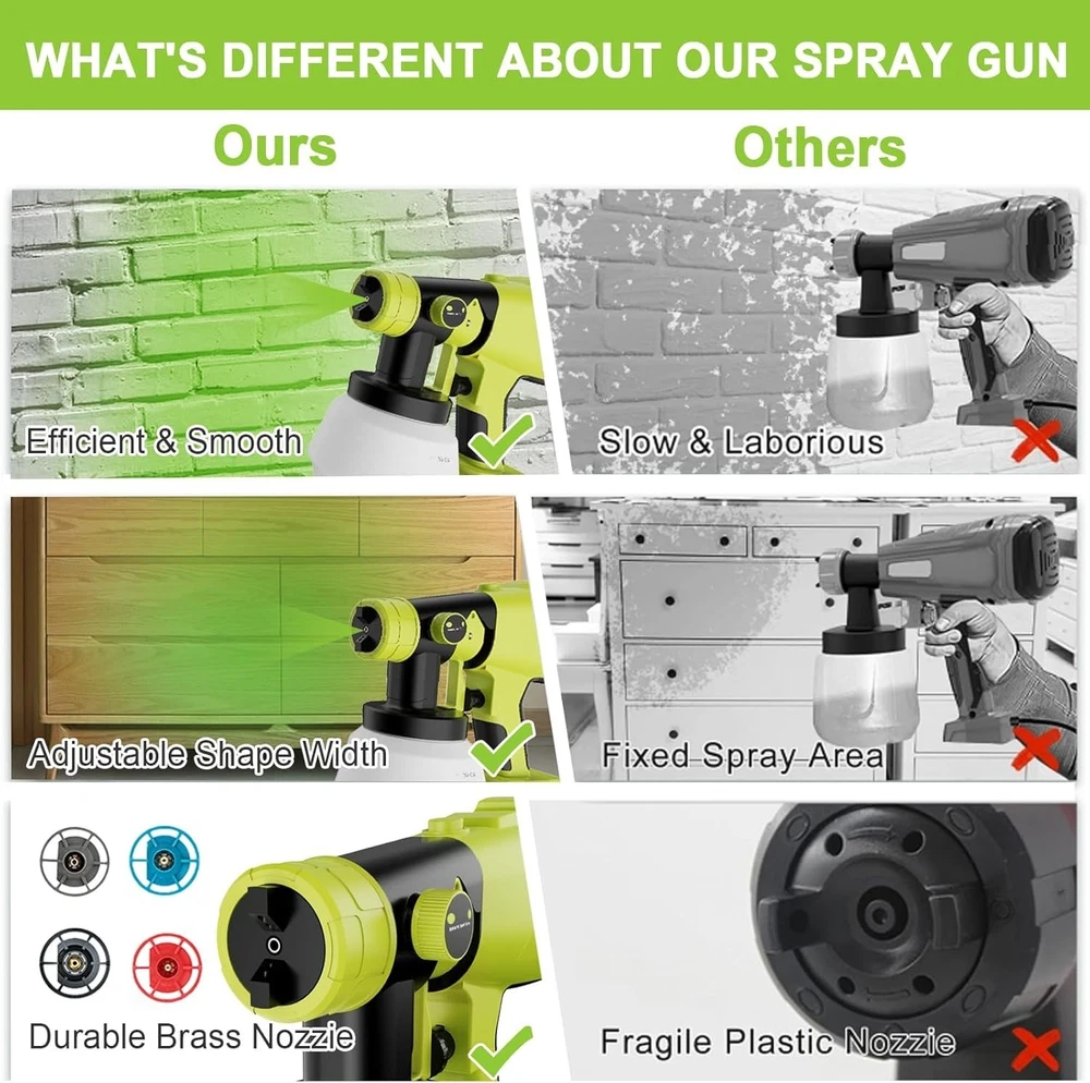 Cordless Paint Sprayer Light Green 1000ML Multi-Pattern Electric for Walls ‹ › ‹ › ‹ › ‹ › ‹ › ‹ › ‹ › ‹ › ‹ › ‹ › Cordless Paint Sprayer Light Green | 1000ML | Multi-Pattern Electric for Walls Product Features: Compatible with Popular Batteries: Works seamlessly with Ryobi Li-ion & Ni-CD Batteries (such as P100, P102, P103, P104, P105, P107, P108, P109). Enjoy the freedom of operation without the hassle of cords. Versatile Spraying Options: Equipped with 3 different spray patterns (vertical, horizontal, and circular) and 4 interchangeable nozzles for ultimate control. The 2.5mm nozzle is pre-installed; additional sizes include 1.0mm, 1.8mm, and 3.0mm for diverse projects. High-Powered Performance: Built with a robust brushless motor for reduced noise and extended operation. Achieve an impressive maximum viscosity of 80 DIN/sec and a speed of up to 1600 ml/min, allowing you to complete jobs swiftly and efficiently. Lightweight & Portable: Weighing only 2.5lbs, this sprayer is designed for effortless transport, making it perfect for a range of indoor and outdoor applications including doors, windows, fences, ceilings, floors, and more. Hassle-Free Maintenance: User-friendly design makes it simple to disassemble and clean. Includes cleaning brush and needles to ensure optimal functionality and prevent clogs after every use. What’s Included: 1000ml Paint Sprayer 4 Size Nozzles User Manual Cleaning Brush Cleaning Needle Viscosity Cup Paint Filter Why Choose Our Cordless Paint Sprayer? Transform your painting experience with the ultimate cordless convenience. Designed for effortless operation, this paint sprayer not only enhances project efficiency but also guarantees excellent results with minimal effort. Whether you are a seasoned DIY enthusiast or a beginner, our paint sprayer is your perfect partner in achieving flawless finishes. Order your Cordless Paint Sprayer today and elevate your painting projects to new heights of excellence! Shipping Free & Fast Shipping - We offer free shipping to most of the USA with a normal delivery time of 3-7 days. However, due to the current situation, additional delivery time (up to 3 weeks) may be required for some items. Alternative Carriers - We may use alternative carriers (e.g. USPS, FedEx, UPS, etc.) to ensure your package arrives safely and on time. Due to the use of multiple carriers, we are unable to provide a tracking number automatically. Handling Time - Orders are processed and shipped within 1-2 business days of receiving cleared payment. Shipping Restrictions - Shipping to Alaska, Hawaii, Puerto Rico, Guam, and other US territories may incur shipping charges or delivery restrictions. Please contact us before ordering, or your order can be refunded/cancelled. State Restrictions - There may be restrictions based on your state of purchase. For example, certain items may not be shipped to California due to state regulations. Contact for Tracking Updates - If you require tracking updates or have any concerns about the delivery of your order, please feel free to contact us, and we will be happy to assist you. Return 30-Day Hassle-Free Returns - We want you to be completely satisfied with your purchase. If you are not, you can return the item within 30 days of receiving it for a full refund or exchange. Easy Return Process - To start a return, simply contact us and we will provide you with a prepaid return shipping label and detailed instructions. Restocking Fee - There are no restocking fees for returns. However, the buyer is responsible for return shipping costs if the return is not due to a seller's error. Refund Processing Time - Refunds will be processed within 5 business days of receiving the returned item in its condition. Payment We accept all major credit cards, PayPal, and Apple Pay for your convenience. Your payment information is secure and encrypted to ensure a safe and seamless transaction. Please complete your payment within 3 days of purchase to avoid any delays in shipping. Feedback Your feedback is extremely important to us. We strive to provide the best products and customer service possible. If you are satisfied with your purchase, please take a moment to leave us a positive review. If you have any concerns or issues with your order, please contact us before leaving negative feedback. We are committed to resolving any problems and ensuring your satisfaction. Contact Us If you have any questions or concerns, please feel free to out to our customer support team. You can contact us through the eBay messaging system. We are available Monday to Friday, 9:00 am to 5:00 pm EST, and we will do our best to respond to your inquiry within 24 hours. Buy it now and enjoy a pleasant shopping experience! Unit Quantity: 1 Compatible Material: Exterior Paint,Interior Paint,Polyurethane/Lacquer,Primer,Sealer,Stain Features: Adjustable Pattern Control,Cup Fed,Multidirectional Spray,Onboard Storage Items Included: 1000ml Paint Sprayer,Paint Sprayer,4 Size Nozzles,User Manual,Cleaning Brush,Cleaning Needle,Viscosity Cup,Paint Filter Suitable For: Commercial,Decking,Door,Exterior,Fencing,Floor & Ceiling,Furniture & Cabinet,Interior,Residential,Wall,Woodworking Projects,Cabinet Type: Handheld Sprayer Frame Configuration: Handheld Power Source: Battery Color: Light Green Cup/Hopper Capacity: 1e+3 milliliters Item Height: 10 Inches Item Weight: 2.5 lb